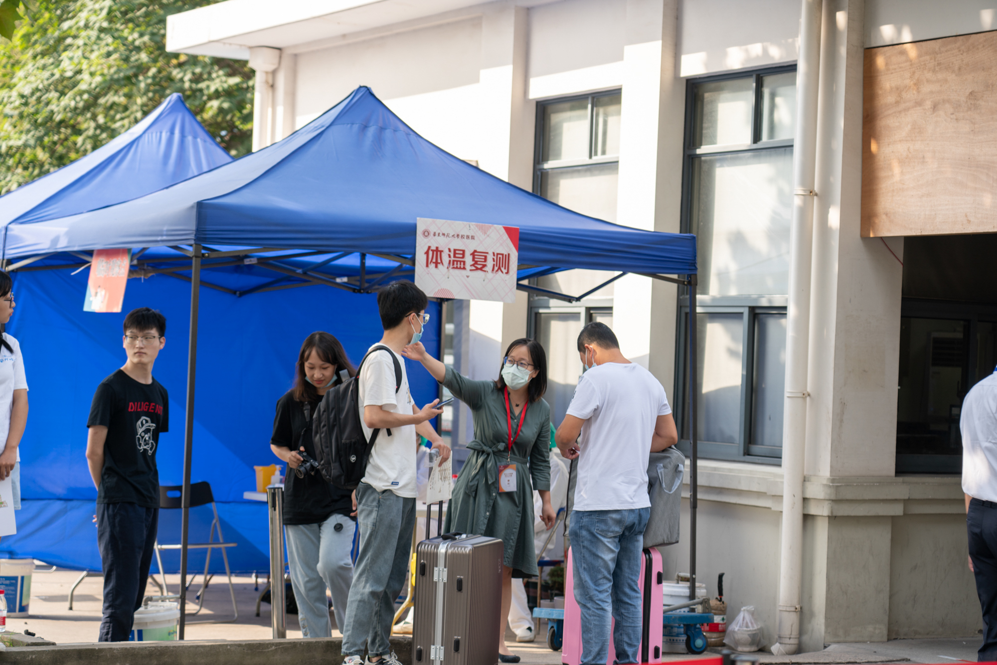 除了学生志愿者,来自学生工作部、研究生院的老师们更是全员上岗,在两校区各校门提供志愿服务,为新生及家长提供咨询引导。