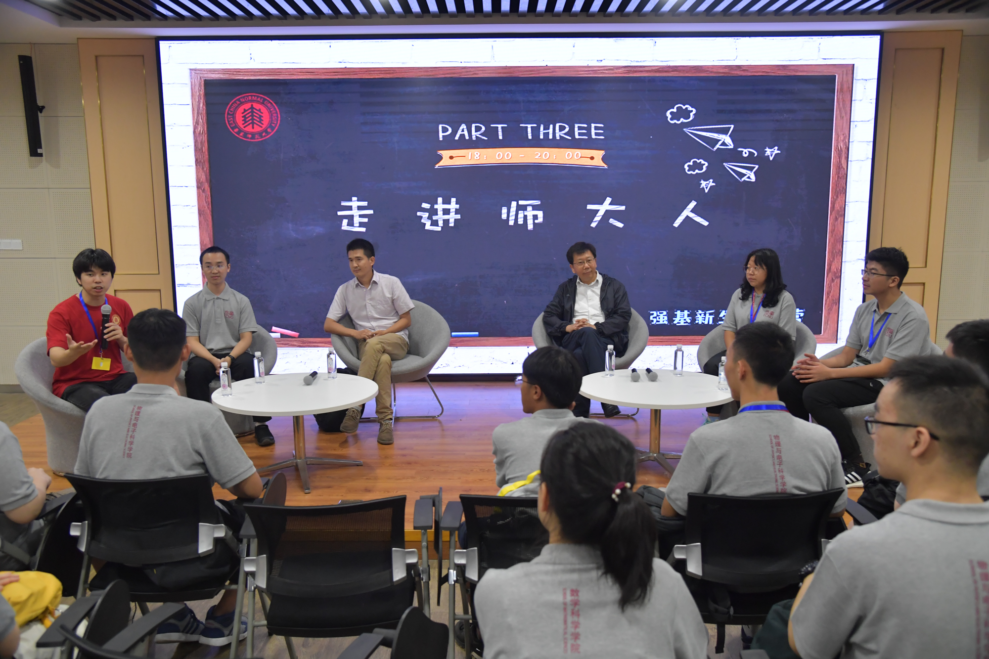 在东川路地铁站至闵行校区的短驳车上,华东师大校史宣讲团志愿者为新生和家长讲述学校历史,让新生们感受师大文脉传承和人文积淀,启发他们思考如何传承师大历史、有意义地度过大学生活。