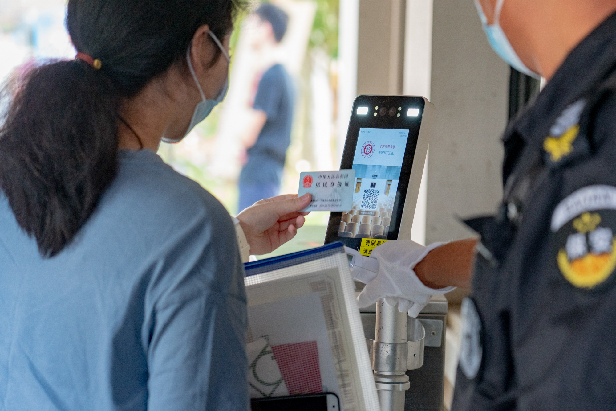 “入校三部曲”:健康码检查、校园卡(身份证)身份识别、体温监测