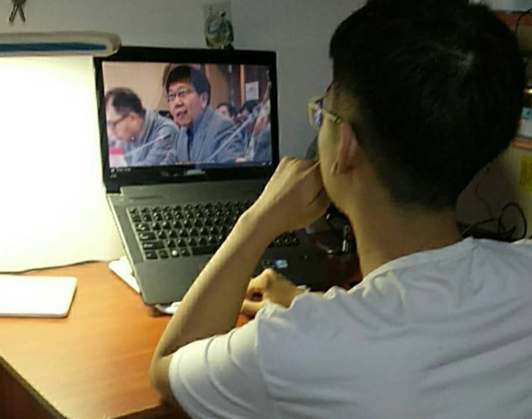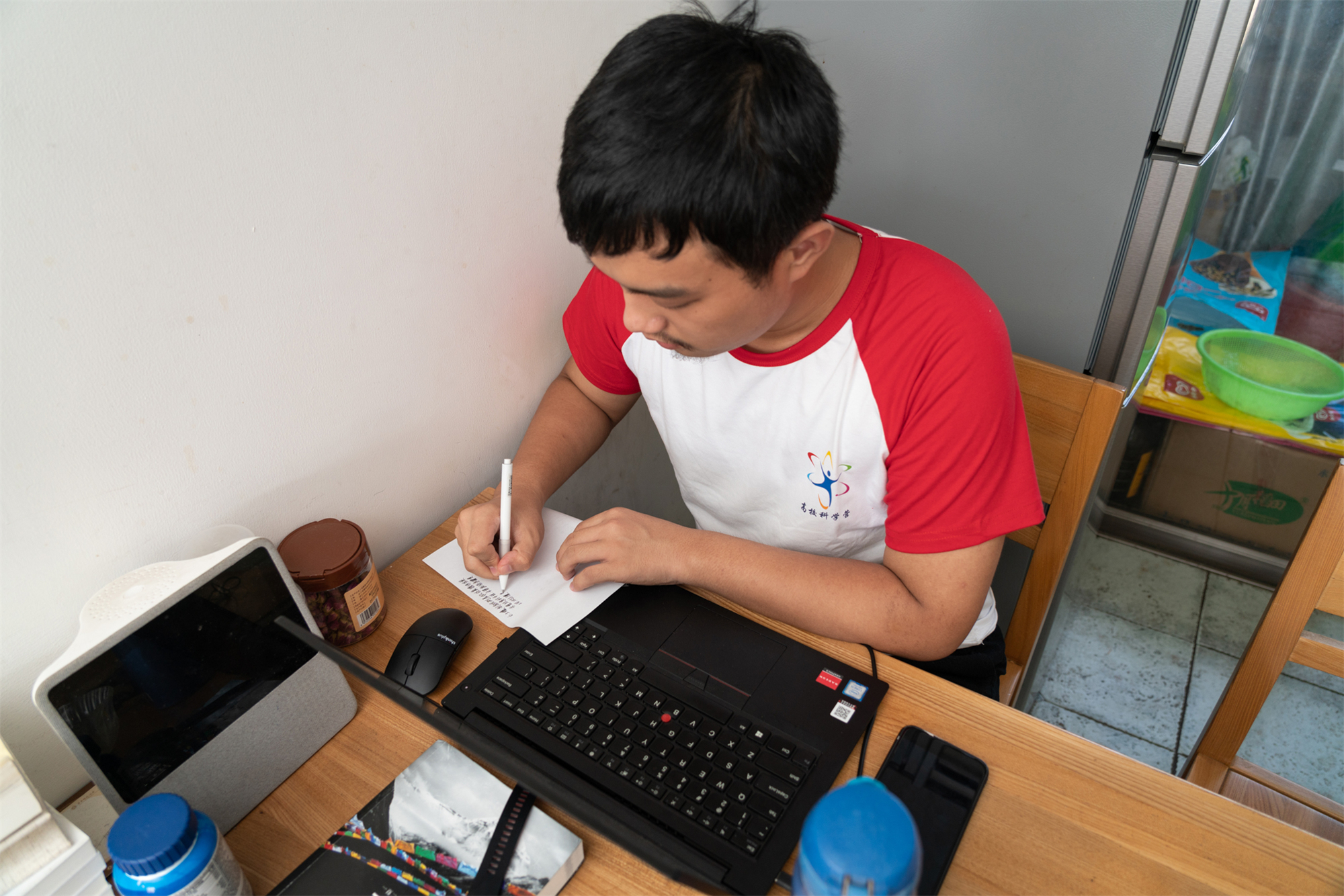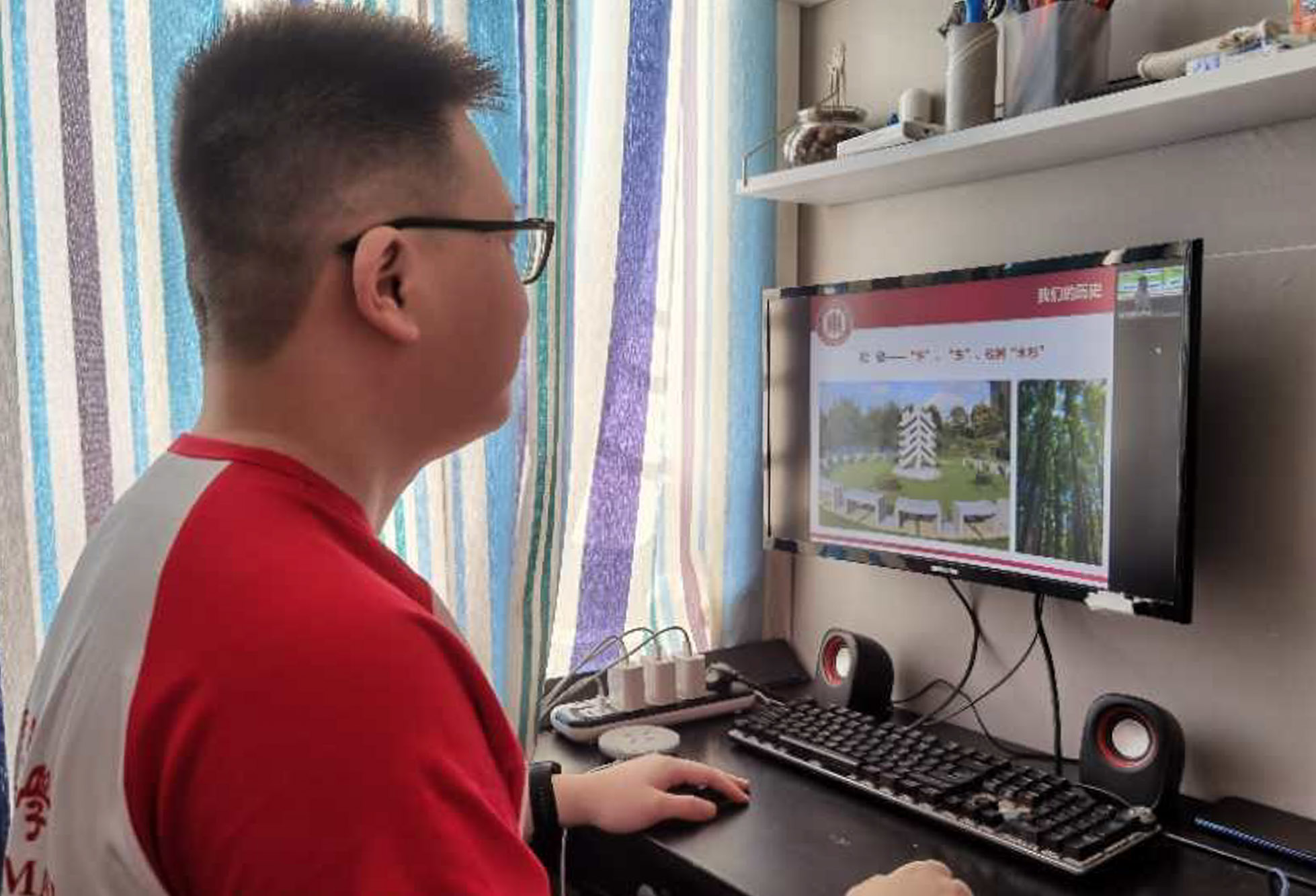 营员林耀彬在香港的家中在线参加华东师大分营开幕式