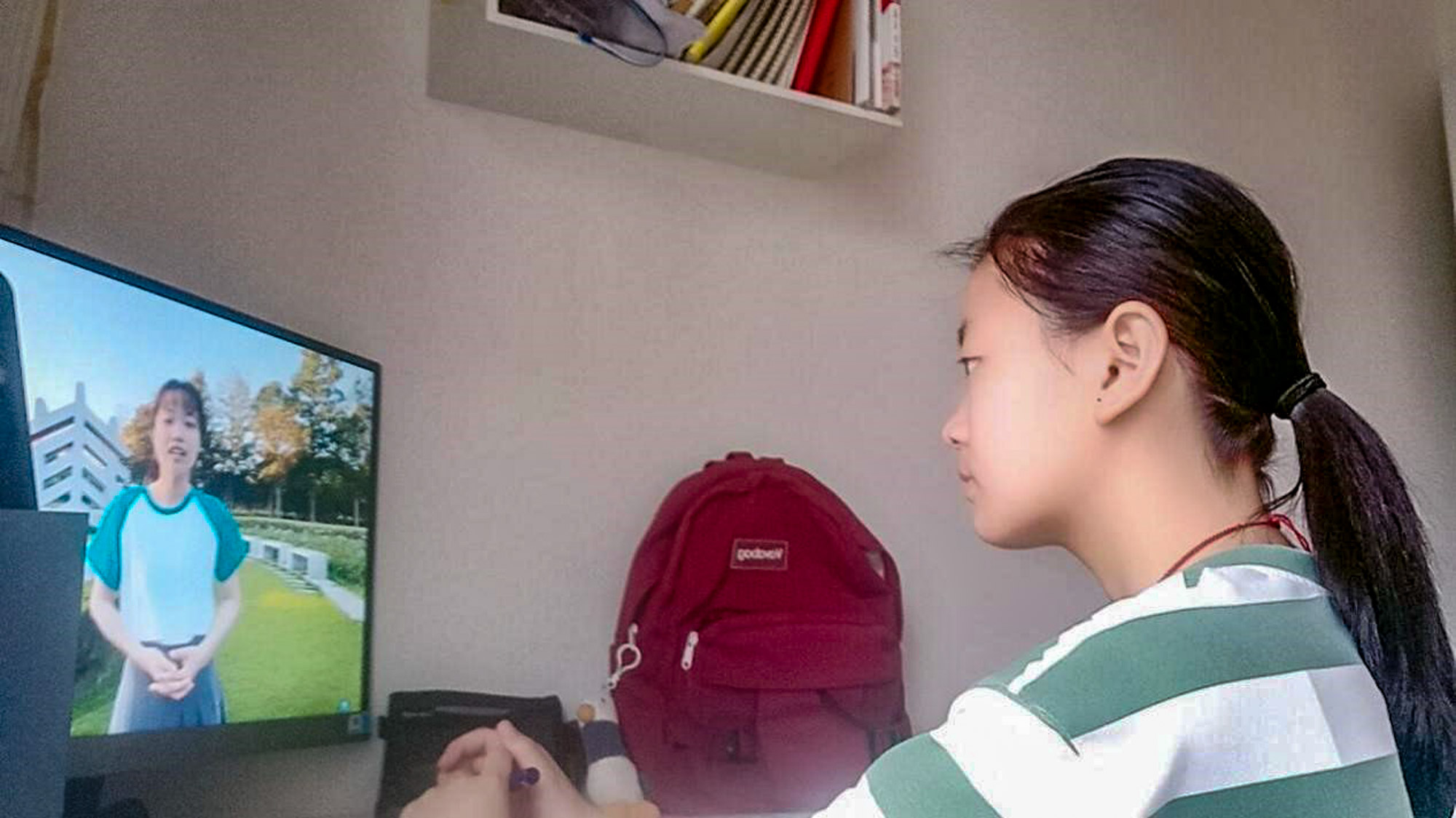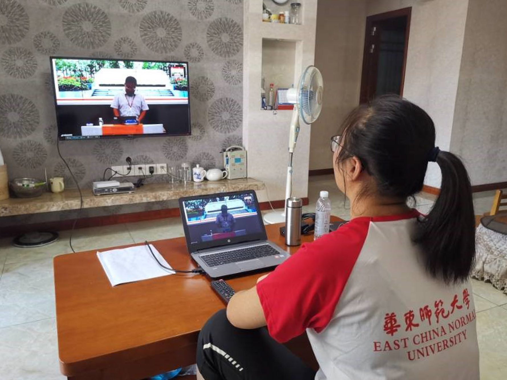 营员刘力菲在重庆的家中在线参加华东师大分营开幕式