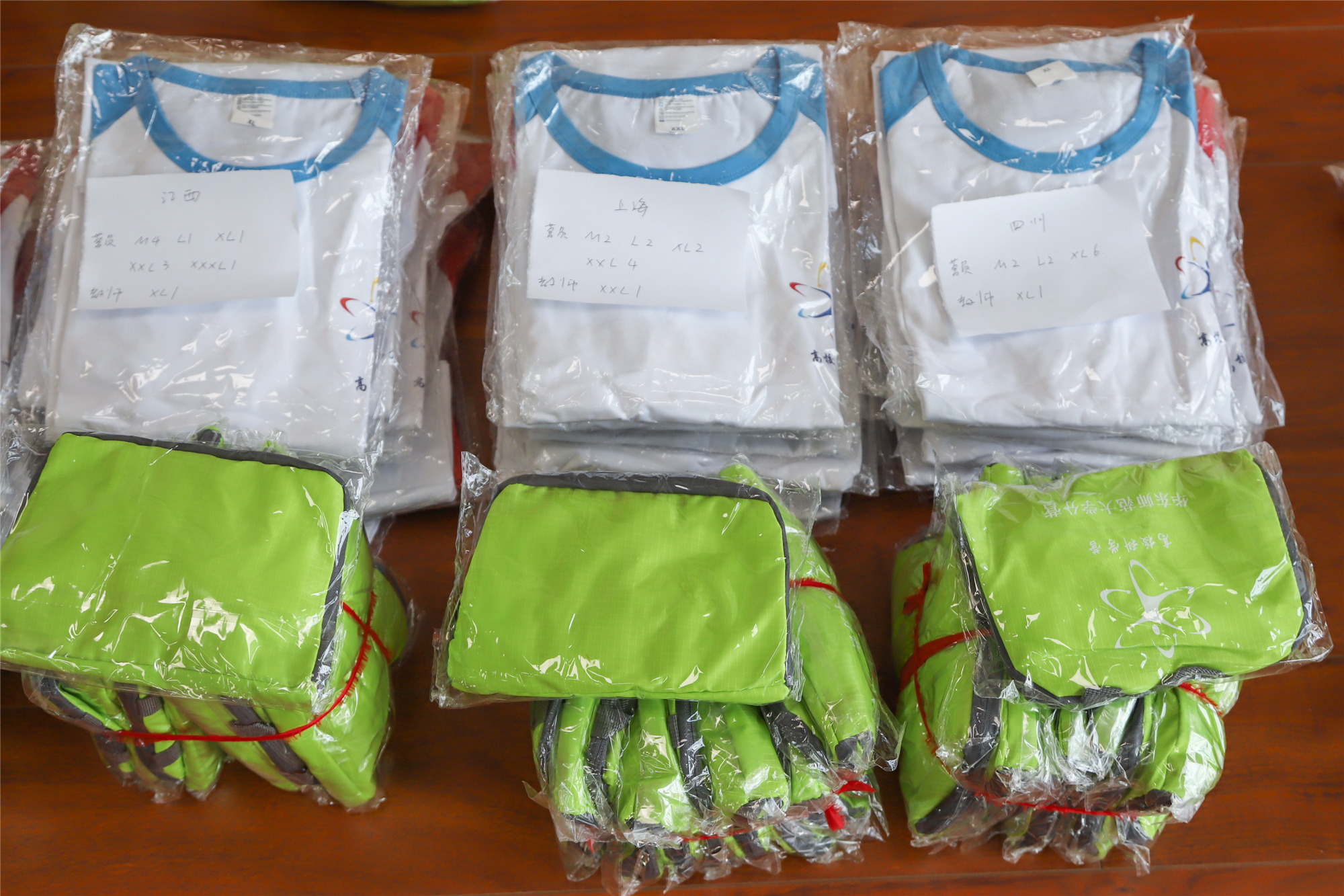 志愿者们对营服进行分类打包