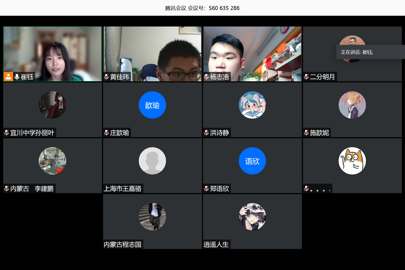3场线上科研实践活动丰富多彩、各有侧重,每晚腾讯会议室里的小组交流与讨论环节也是气氛高涨,营员们各抒己见,互学互助,用智慧点燃青春之火,谱写出这个夏天最难忘的乐章。