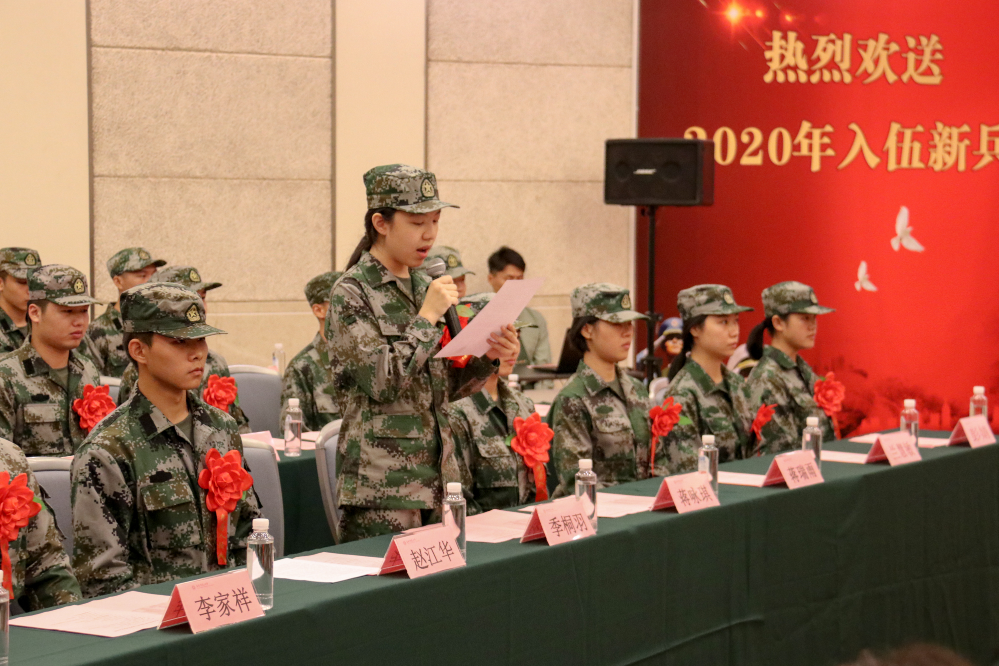新兵代表体育与健康学院赵江华同学发言