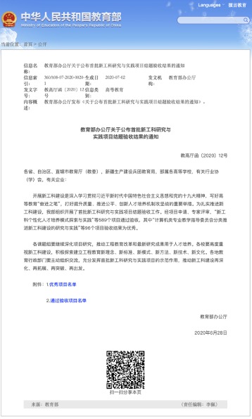7月13日,教育部网站公布了首批新工科研究与实践项目结题验收结果。在验收通过的314所高校的589个项目中,96个项目获评优秀。华东师大数据科学与工程学院承担,周傲英副校长领衔的项目“面向新经济的数据科学与工程专业建设”是师范类高校唯一上榜的项目。