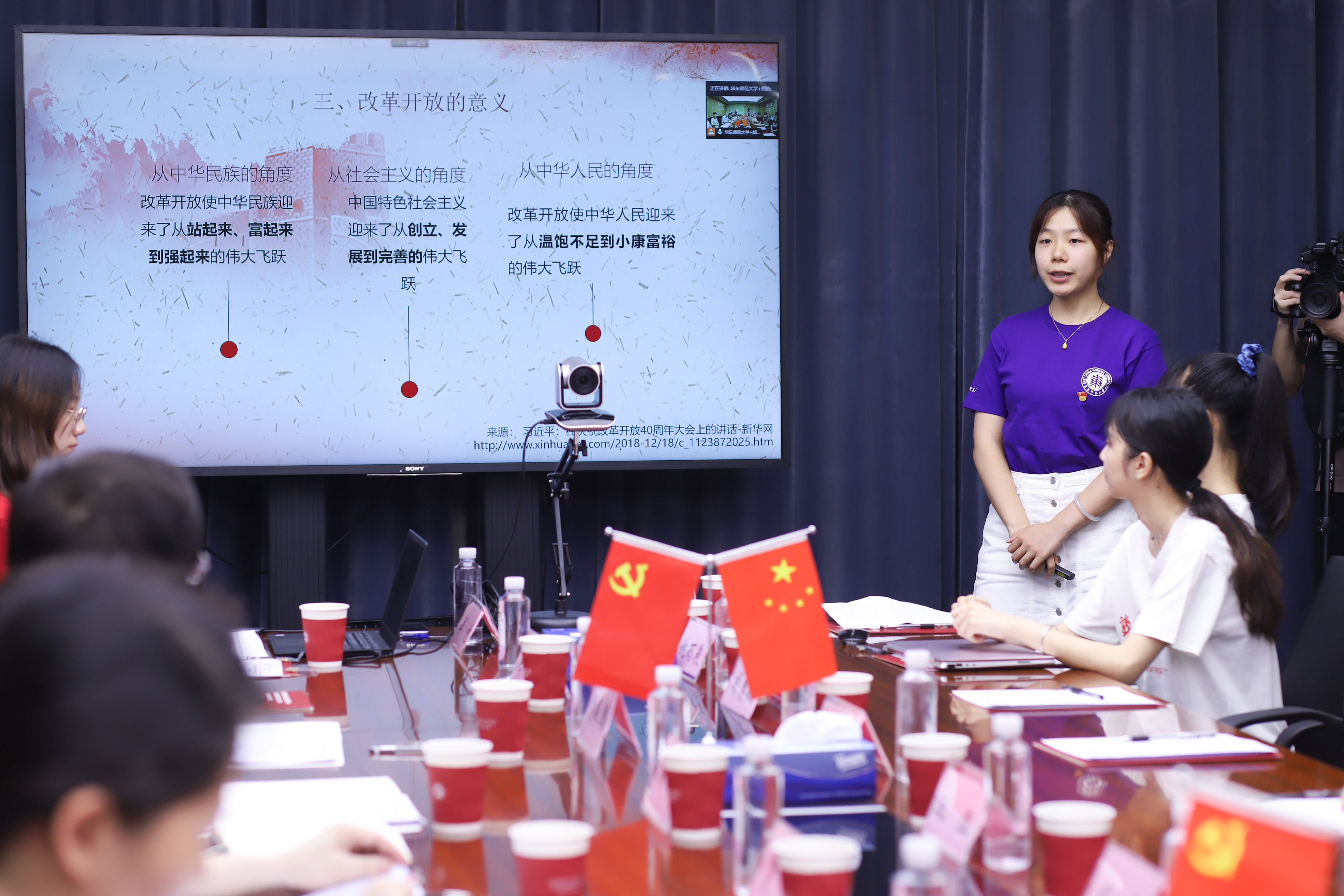 在微党课《博览与聚焦:改革开放那些事》中,教育管理系2017级本科生党员胡慧敏结合对习总书记在庆祝改革开放40周年大会上讲话的学习理解,介绍了改革开放的时代背景、历史意义、光辉历程、伟大影响,同时围绕“人民城市人民建,人民城市为人民”的理念,交流了华东师大教育学人应该如何为上海教育改革发展贡献力量。作为一个地道的上海姑娘,胡慧敏还以改革开放以来浦东新区的蓬勃发展为例,重点讲述了改革开放对于“以人民为中心”发展思想的贯彻和坚持。