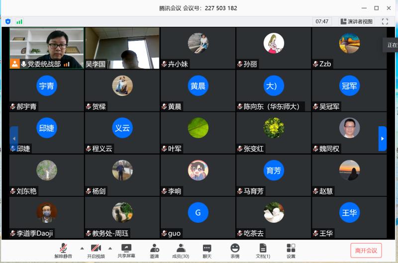 为贯彻《中共上海市委统战部关于支持各民主党派、无党派人士开展党史、新中国史、改革开放史、社会主义发展史学习教育的通知》的文件精神,7月3日下午,党委统战部邀请上海市委讲师团“四史”专家、3245澳门新莆京历史系瞿骏教授在闵行校区行政楼作主题为“理解五四运动的三个维度”的报告。校民革、民盟、民建、民进、农工党、致公党、九三学社等7个民主党派的负责人和无党派人士约50人参与了本次线上线下相结合的学习会。会议由统战部副部长王新燕主持。