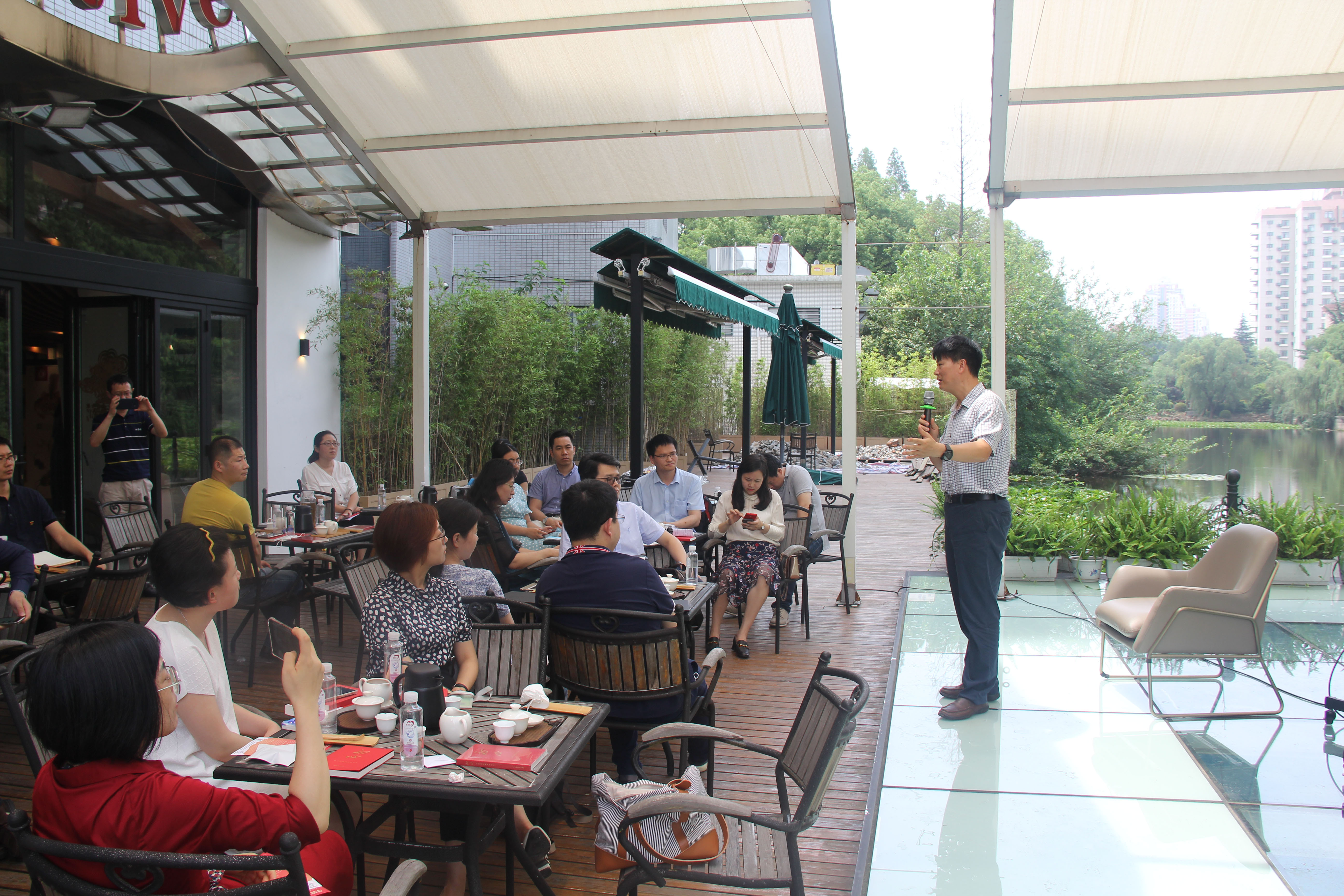 6月17日上午,第17期青年骨干理论培训班在中山北路校区丽娃河畔书吧举行读书分享会。本次分享会围绕“以史为镜,立足岗位,锐意创新”主题,三个小组深度阅读了《红星照耀中国》《中国特色社会主义》《精神的力量——改革开放中的邓小平》等选读书目,并作交流分享。读书分享会由青干班学员胡琨主持。组织部、党校相关职能部门负责人出席读书分享会。