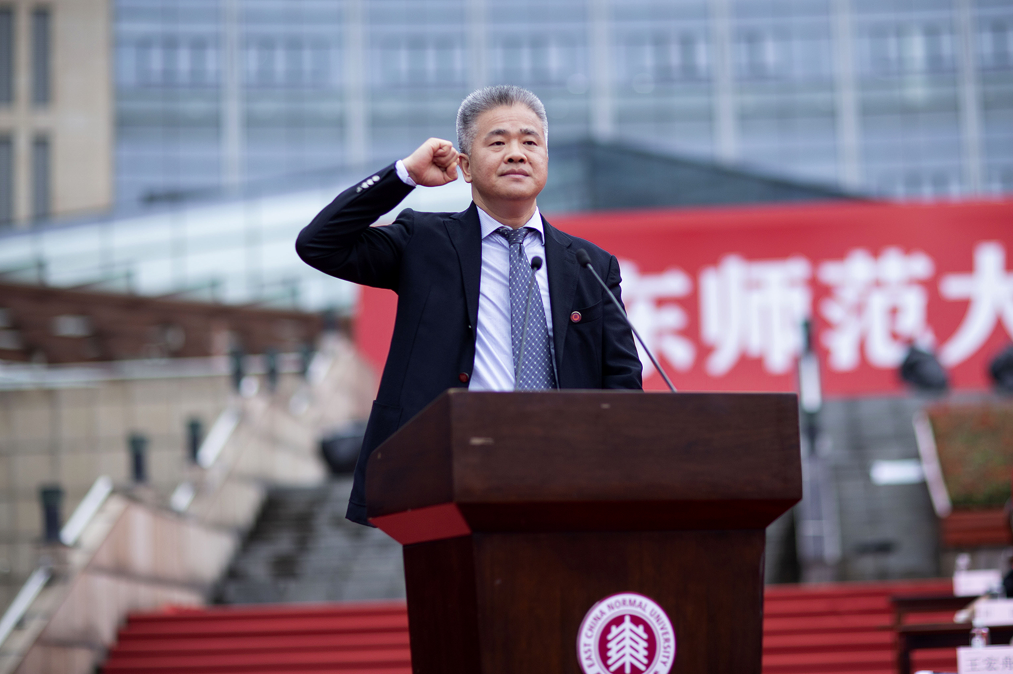1984级中文系校友、复旦大学附属中学校长吴坚领誓师范专业毕业生宣誓仪式