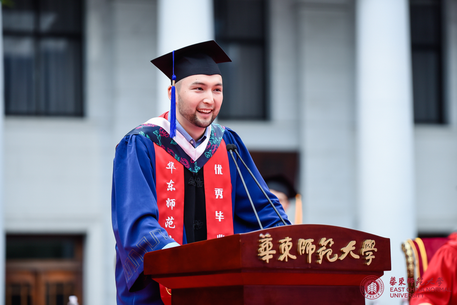 来自爱尔兰的哲学系中国哲学全英文项目硕士毕业生欧宁瑞,将继续留在华东师大攻读博士学位。2012年他在上海访学交流期间曾来过华东师大,大学毕业在伦敦工作几年后,他意识到“我的缘分不是在某台办公桌电脑前,而是在中国传统文化浸润的校园里”。来自哈萨克斯坦的国际汉语文化学院硕士毕业生凯撒表示,作为经历着新冠疫情的即将步入社会的年轻一代,更应该明白命运共同体的真谛,“我们每个人就像是世界这个大城堡的一砖一瓦,我们应该找到自己的位置,发挥一己之力,让这个世界因为我们的存在而变得更加美好。”