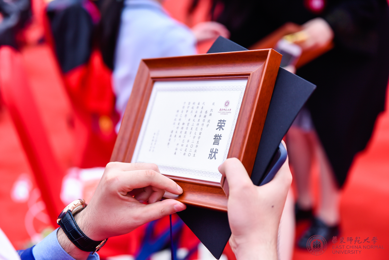 校长、校学位评定委员会主席钱旭红向各学部、院系负责人颁发学历学位授权书,希望通过他们将这份荣耀和祝福传递给每一位毕业生。毕业典礼上,416名上海市优秀毕业生和469名校优秀毕业生获得表彰,全体校领导为优秀毕业生代表颁奖;校党委书记梅兵为“学生心目中最优秀教师”颁奖。自2001年起,华东师大每年在本科毕业班学生中开展“评选你心目中最优秀教师”活动。连续五年被本科毕业生评选为最优秀教师的老师,学校授予“学生心目中最优秀教师奖”。综合近五年本科毕业生评教结果,2020年度“学生心目中最优秀教师奖”获得者是政治学系易妍老师,传播学院罗薇老师,经济与管理学部金铸老师、叶明华老师,体育与健康学院张中印老师,国际汉语文化学院尚雅楠老师、蒋冰冰老师,教育学部占小红老师。此次获奖教师奖金由上海青浦区安乔私立幼儿园捐赠。