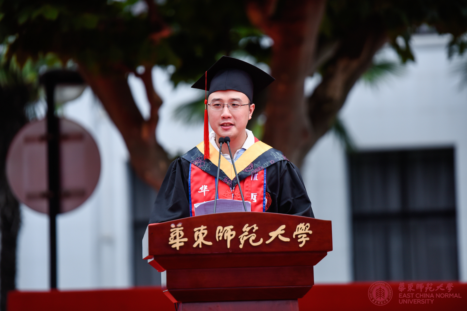 作为毕业生代表,精密光谱科学与技术国家重点实验室的博士研究生张文斌用五年的时间完成了从科研的初入门者到如今学业有成的青年学者的转型,他的发言展现了勇于探索不懈钻研的华东师大人的风采。