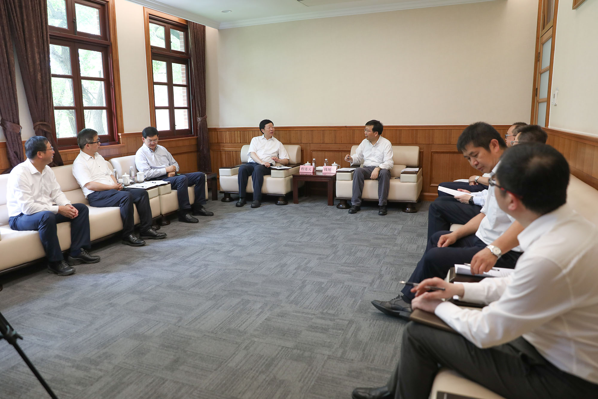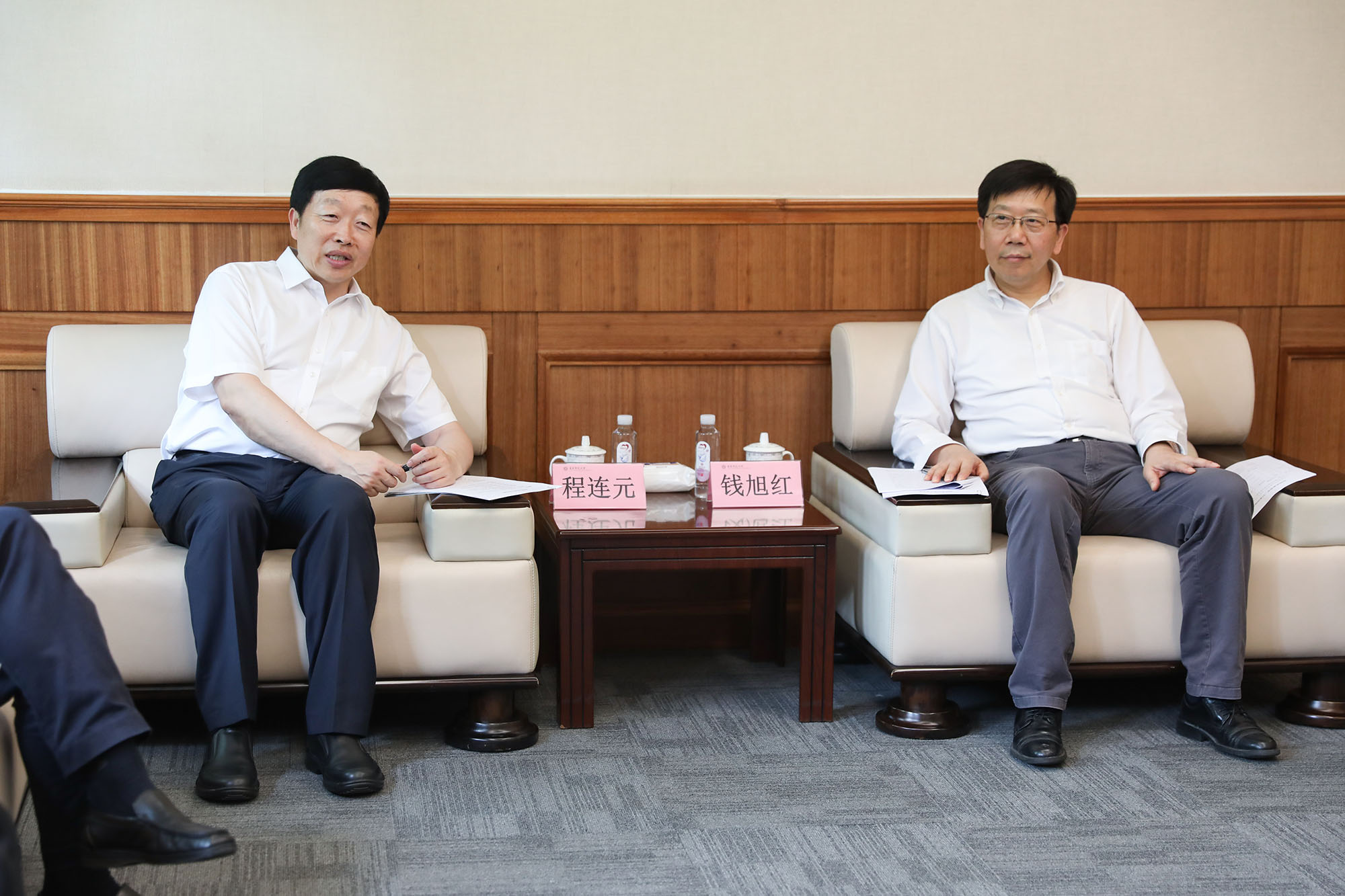 昆明市委书记程连元(左)、华东师大校长钱旭红座谈交流