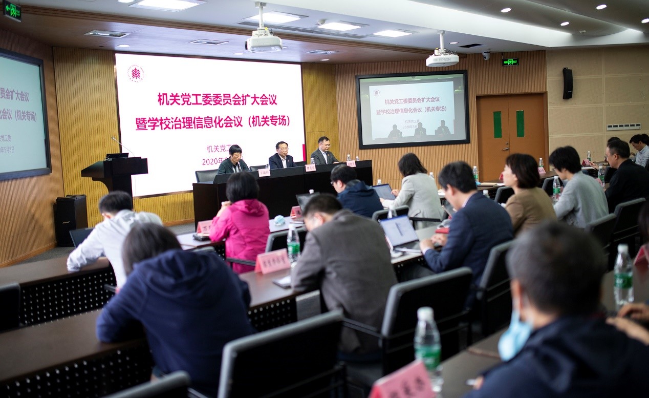 机关党工委委员会第二次扩大会议暨学校治理信息化会议(机关专场)以现场加视频的方式召开