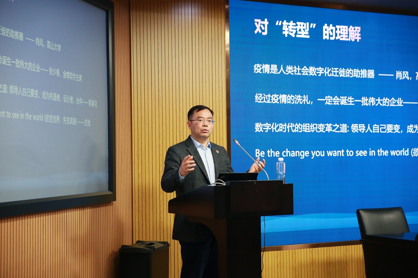 会上,副校长周傲英首先作题为《教育信息化推动学校数字化转型》的主旨报告。周傲英从对“转型”的理解谈起,探讨数字化的新内涵,并重新解读了教育信息化,将教育信息化和学校治理融合进行了阐释,同时重点结合学校当前的发展需求,从“加强顶层设计:一把手工程”“加强队伍建设:信息办队伍+信息专员队伍”“多方投入,形成强大合力”“营造文化,形成师大模式”等四个方面介绍了学校治理信息化的工作举措,用理论和实践相结合的方式对教育信息化、学校治理信息化做了清晰的解读和呈现。周傲英希望机关全体部处和全体员工都能够紧扣学校发展需求,牢牢抓住以信息技术为代表的科技发展带来的机遇,加快建设便捷、高效的数字化校园环境,将教学、科研、管理和校园生活进行充分融合,以问题为导向,主动想、大胆试、一起做,全面提升机关治理能力和服务质量。