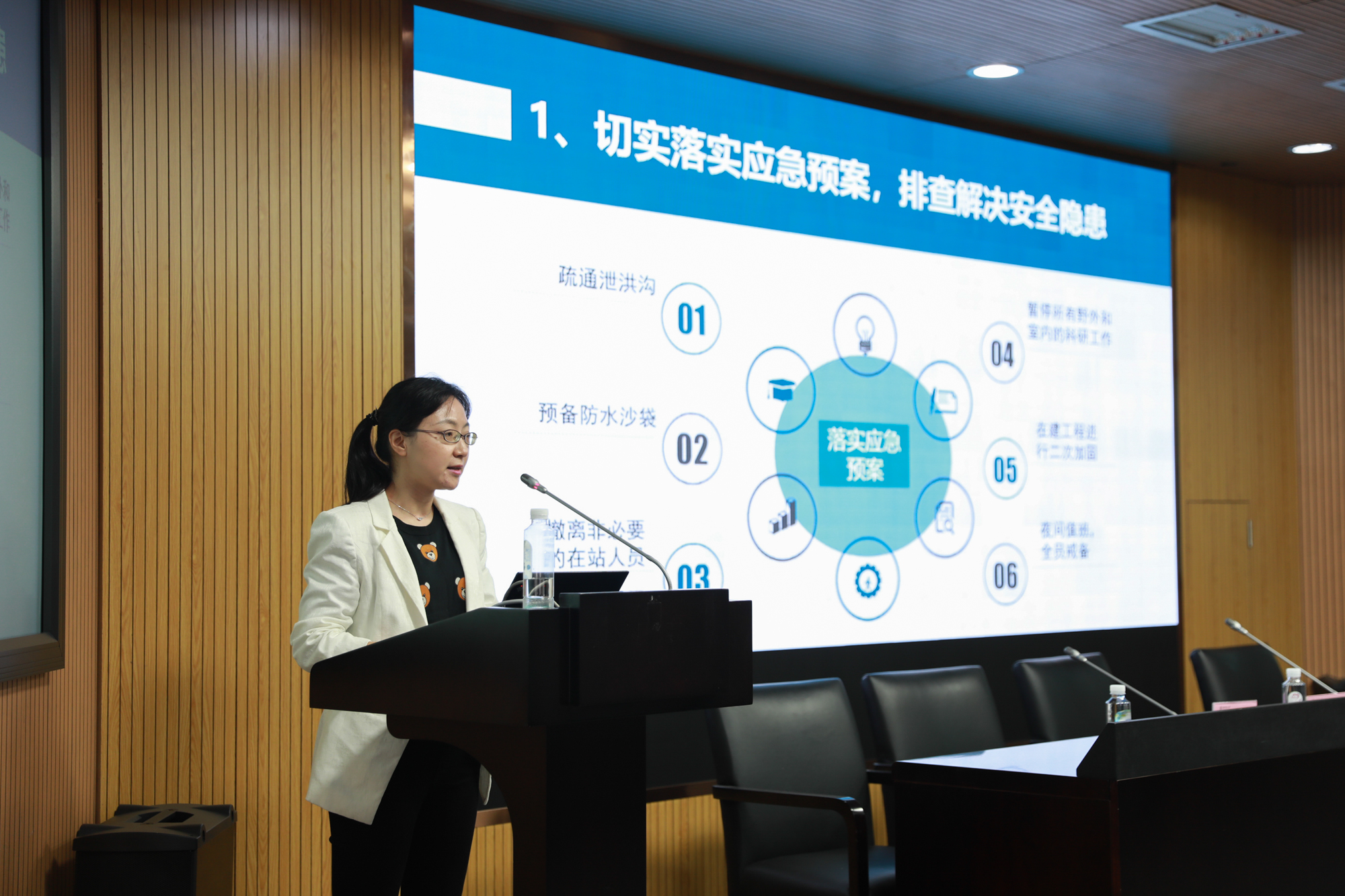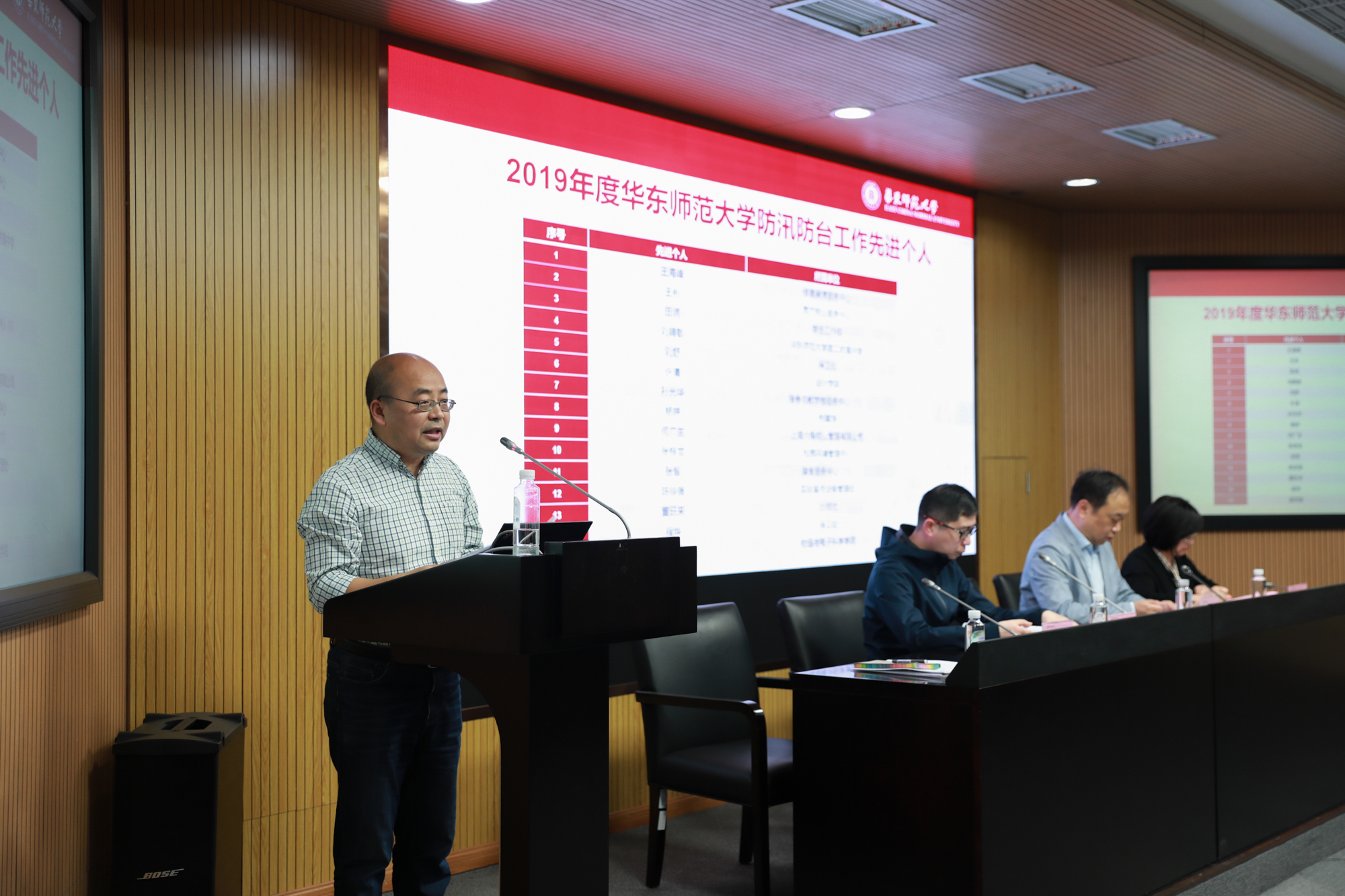 校防汛防台工作领导小组副组长、学校办公室主任潘靓总结华东师大2019年防汛防台工作开展情况