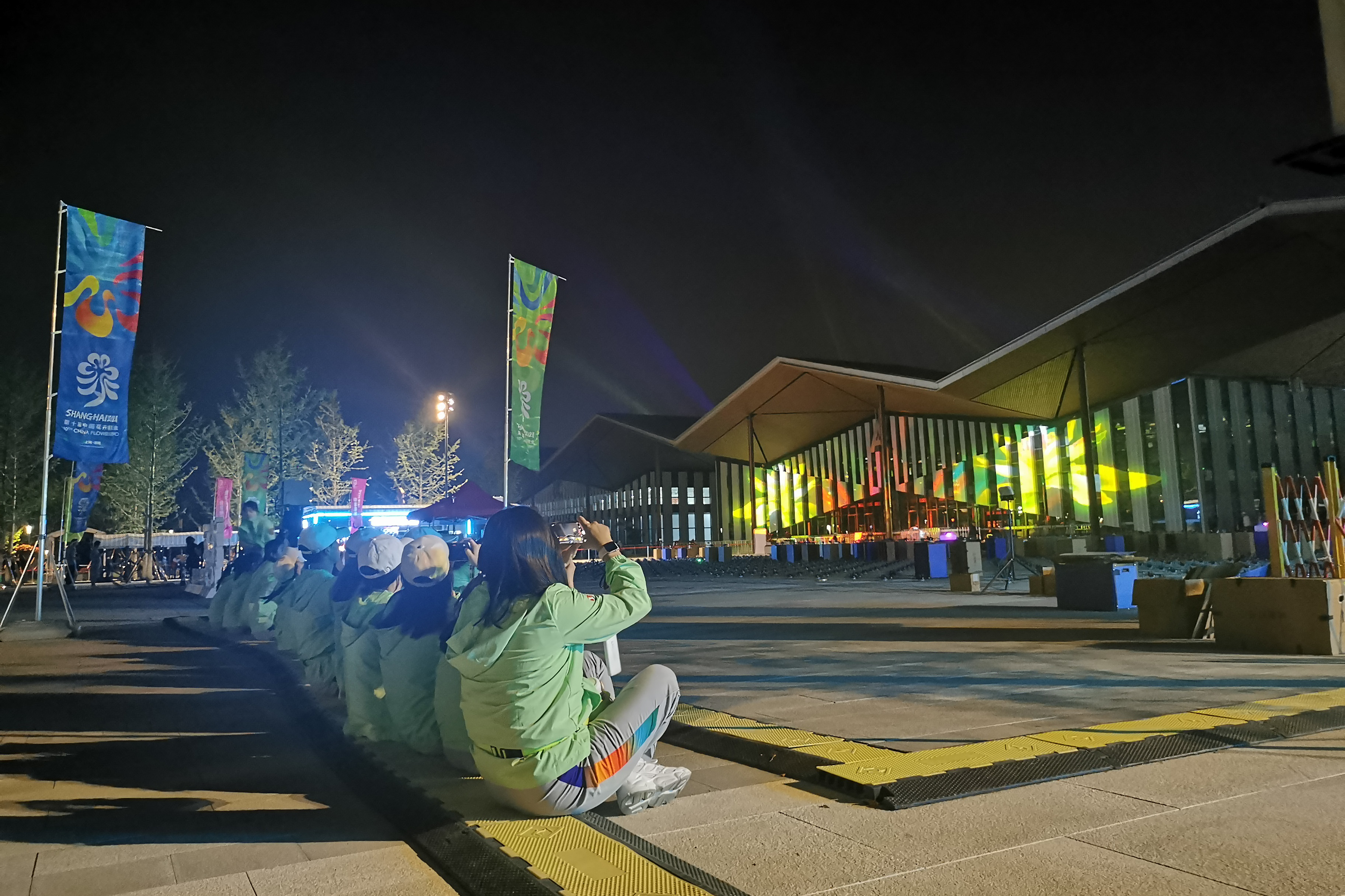 师大“小白鹭”们伴着朝阳出发,每日工作时长超过12小时,他们一直坚守在工作岗位上,终保持着昂扬精神迎接每一位游客。而负责主题活动的工作小组则因内容灵活机动,一直处在随时待命状态。指令一下,师大的“小白鹭”们便立即投入到紧张有序的工作状态中,最终在复兴馆前的广场上,整齐摆放1500架无人机,为当晚花博园无人机表演提供了有力的幕后支持。
