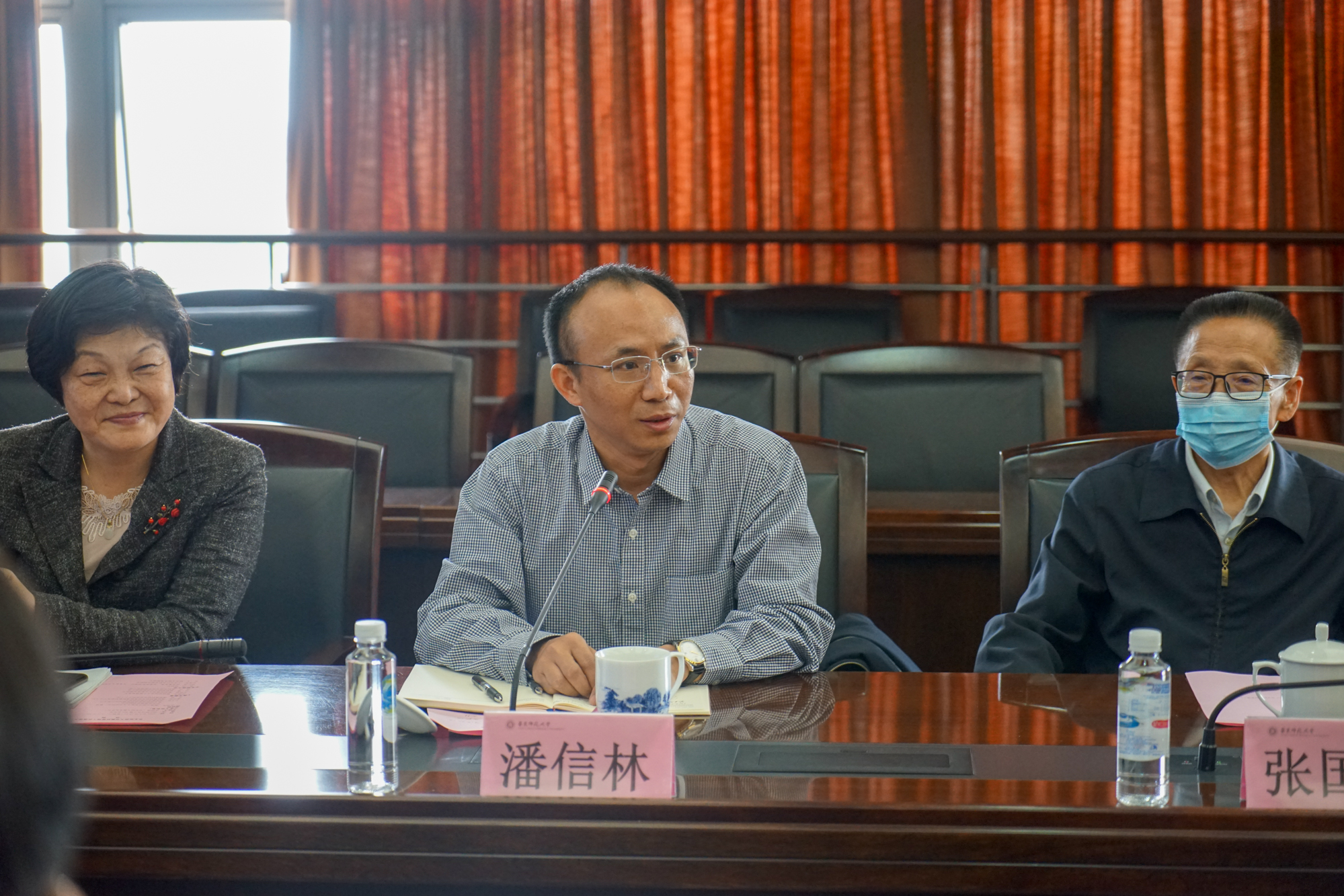 课题组主任潘信林表示此次调研深受鼓舞。他指出,华东师大从制度、机构、人员、基地、奖励和保障等方面落实《办法》的一系列举措做得扎实、有特色。目前教材建设面临着前所未有的机遇和形势,华东师大应该大有所为,完善工作体系、制度体系、标准体系和研究体系建设。他还就教育部教材局下一步的工作部署进行了通报。
