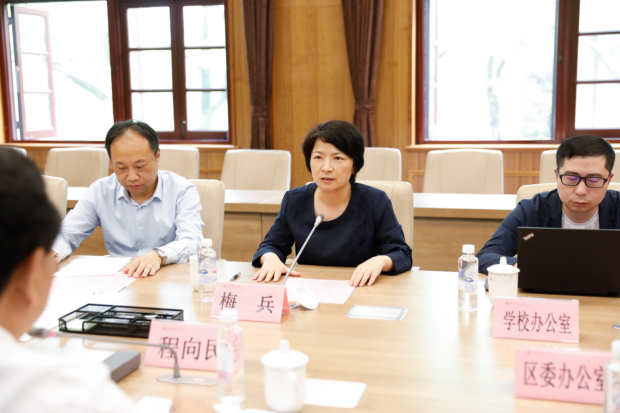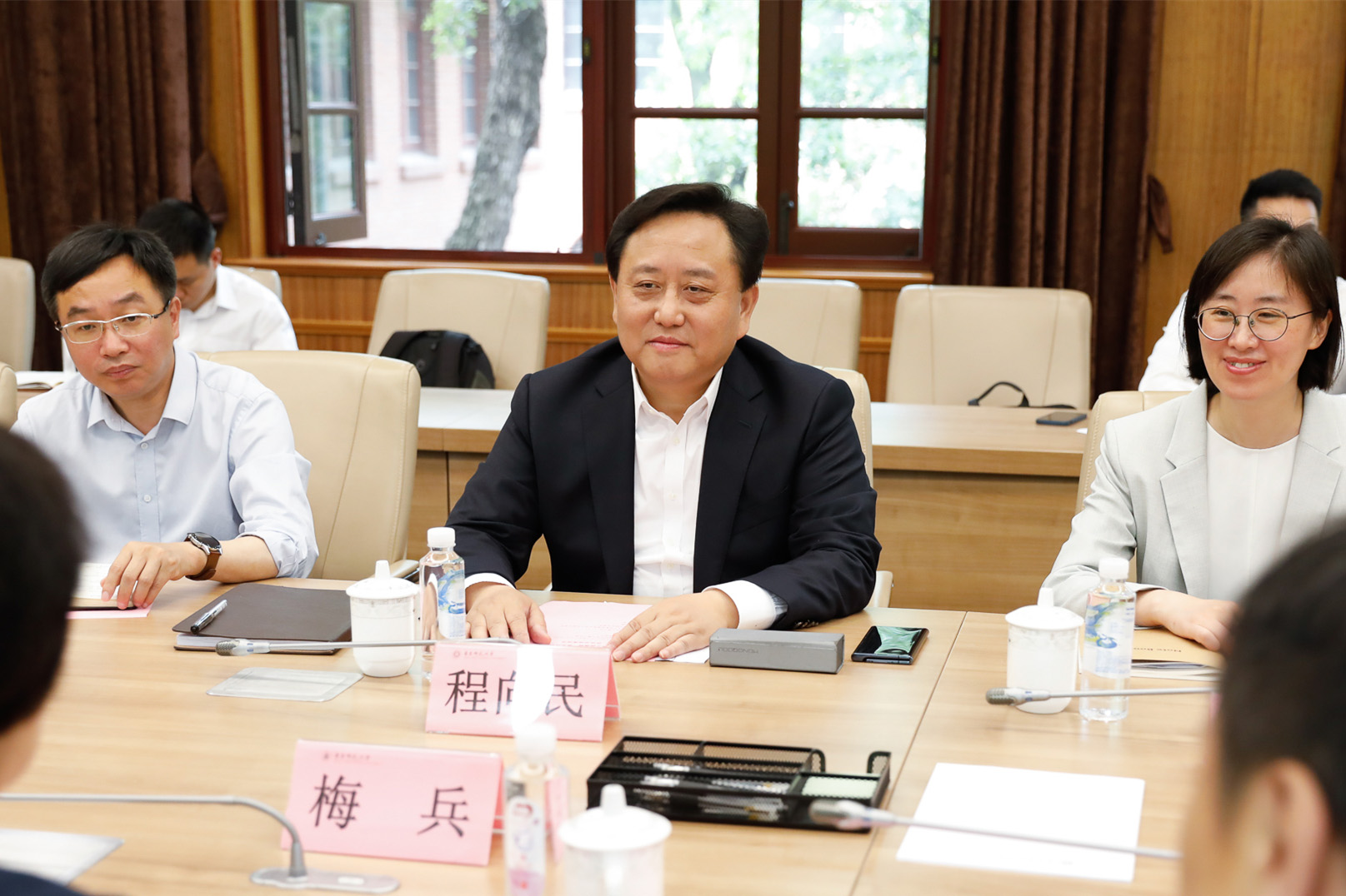 5月27日上午,松江区人民政府-3245澳门新莆京举行区校合作交流座谈会。华东师大党委书记梅兵会见了来访的松江区委书记程向民一行。座谈会由副校长戴立益主持。松江区副区长顾洁燕,华东师大二附中校长李志聪等出席会议。