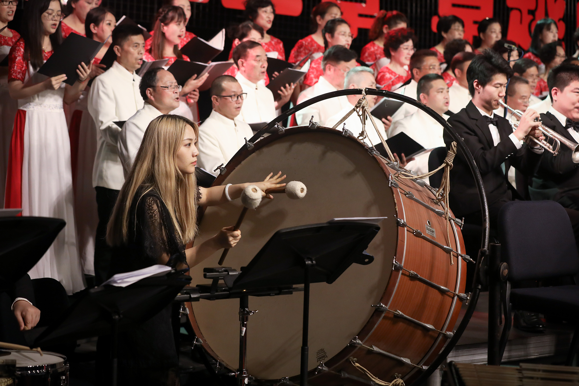 《保卫黄河》《我爱你中国》和《在希望的田野上》等经典歌曲,在跌宕起伏的旋律和波澜壮阔的意境中,尽显中华儿女不屈不挠和誓死保卫祖国山河的决心,表达人民对党、对祖国无限的热爱之情。最后,在常林老师的指挥下,全体师生一同唱响《没有共产党就没有新中国》,为整场音乐会画上圆满的句号。