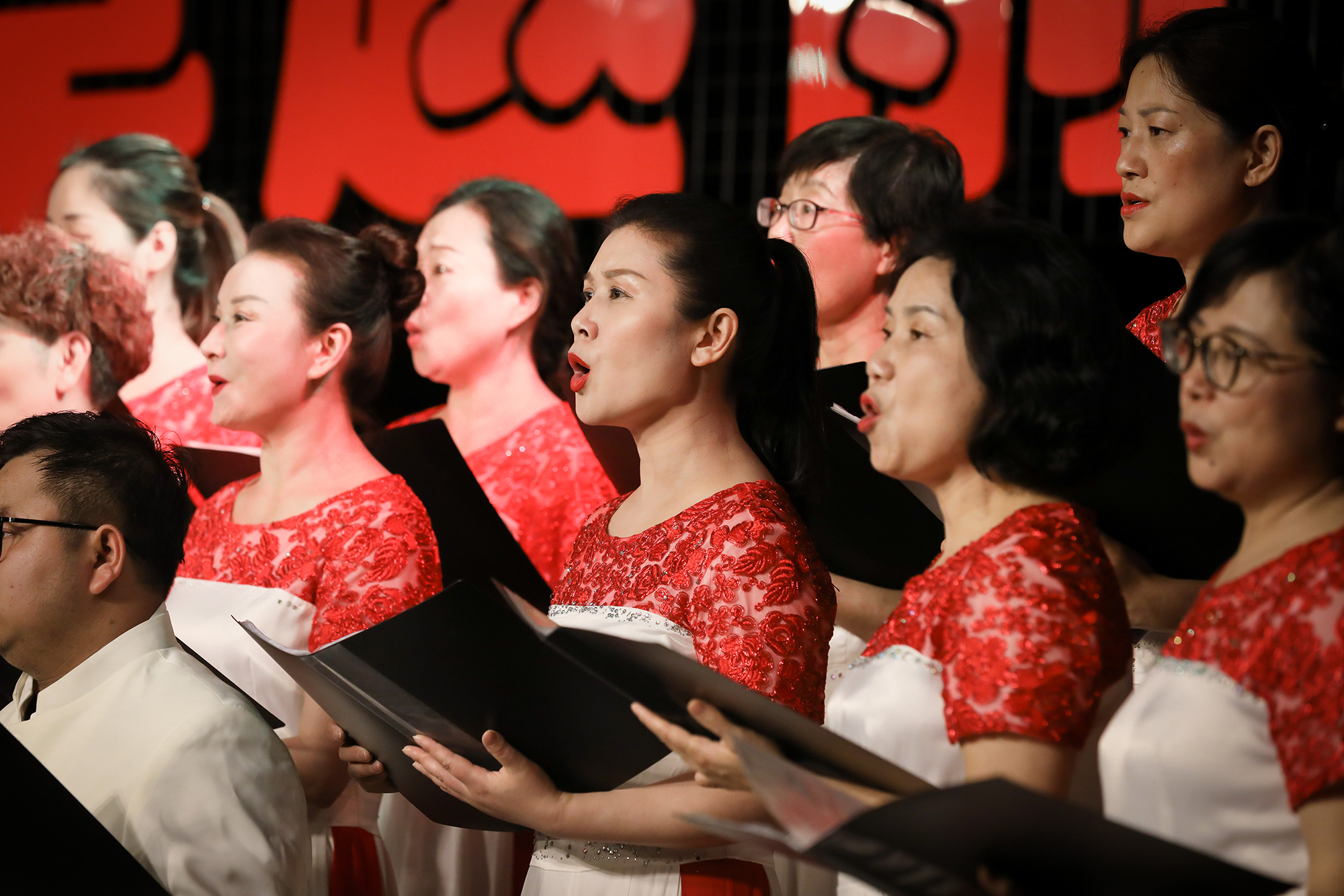 忆往昔,峥嵘岁月稠;望红旗,往事涌心头。音乐会以一首《红旗颂》拉开序幕,带领大家一同走进红歌的世界。随后,同湖州城市合唱团一起深情演绎了《忆秦娥·娄山关》《人民解放军占领南京》等爱国主义经典歌曲。