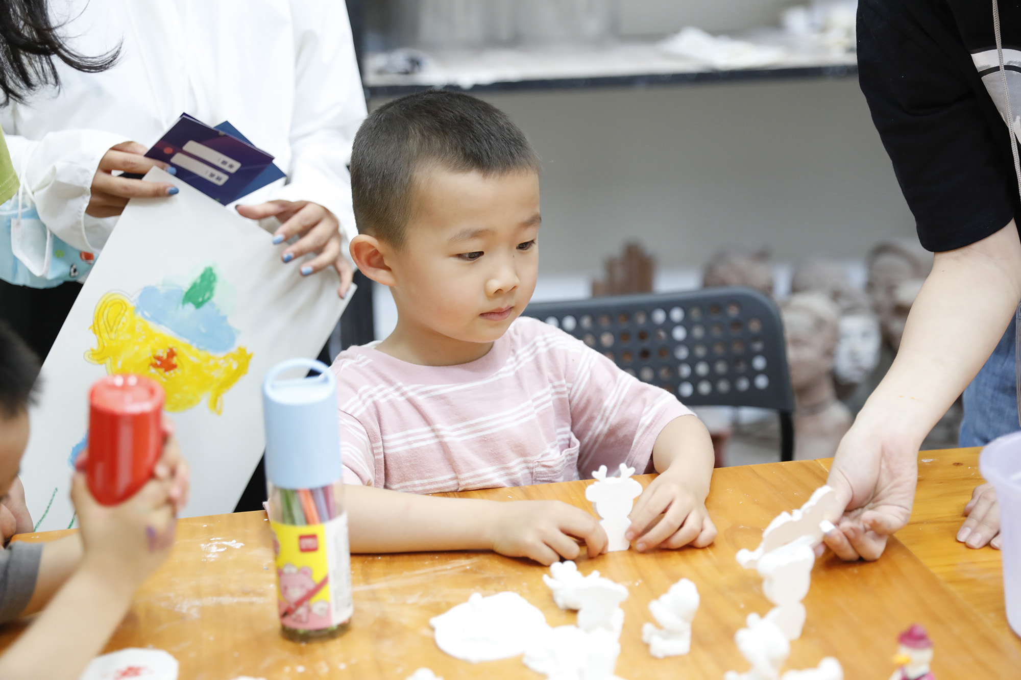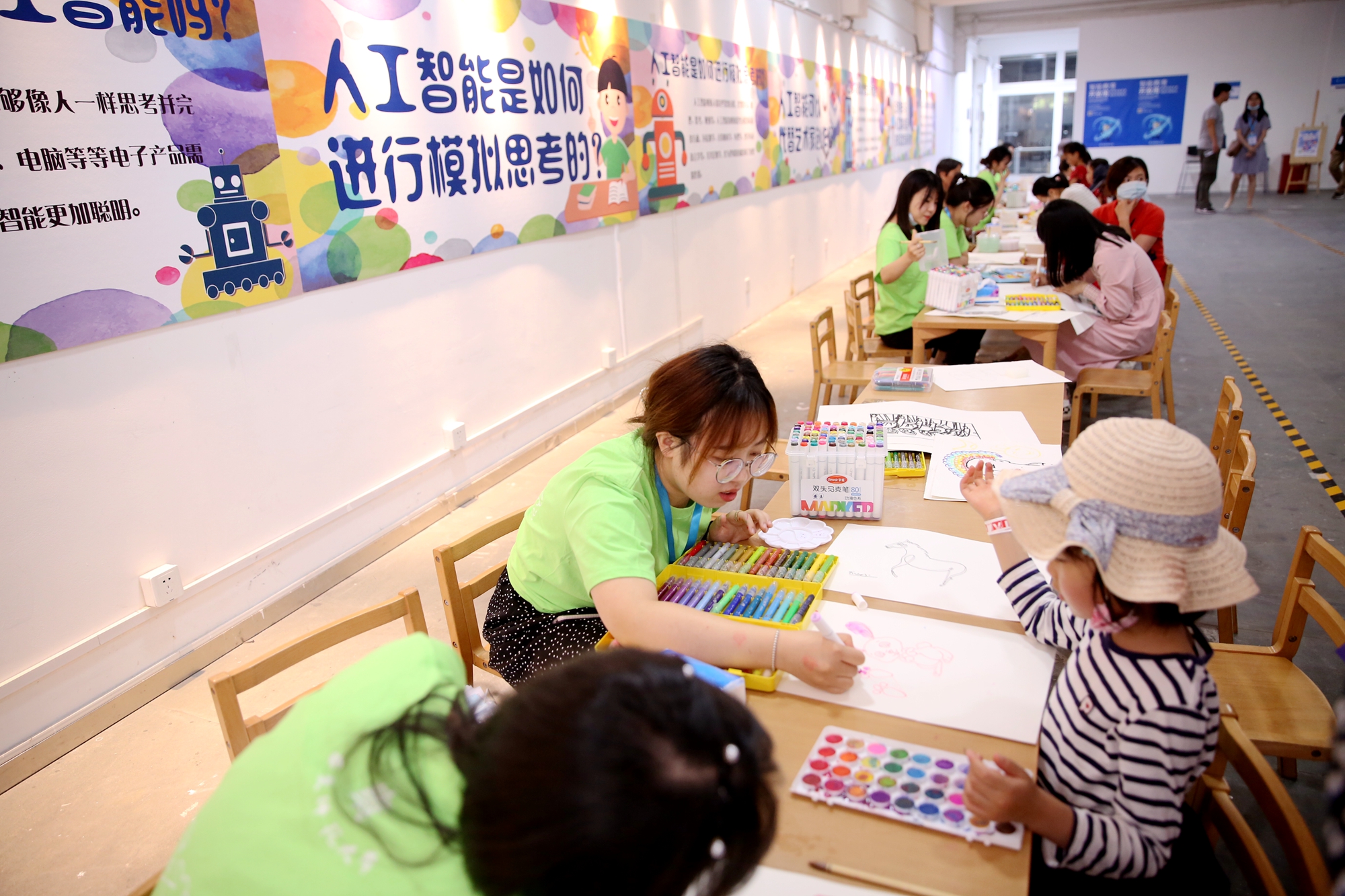同样体现产学研深度合作的人机协作智能美育活动中,8台智能机器人在画卷上“奋笔疾书”绘制《上海·开天辟地》连环画、中国工笔画以及西方著名艺术家毕加索的作品。小观众们目不转睛地盯着并观摩机器人作画的方式和过程,并使用画笔在画卷上进行填色等二次艺术创作。这项人工智能绘画项目体现了电脑协同、模拟输出、再次创新等智能化特征,是上海艺术管理与文化创意紧缺人才培养基地产学研落地的重要项目之一。