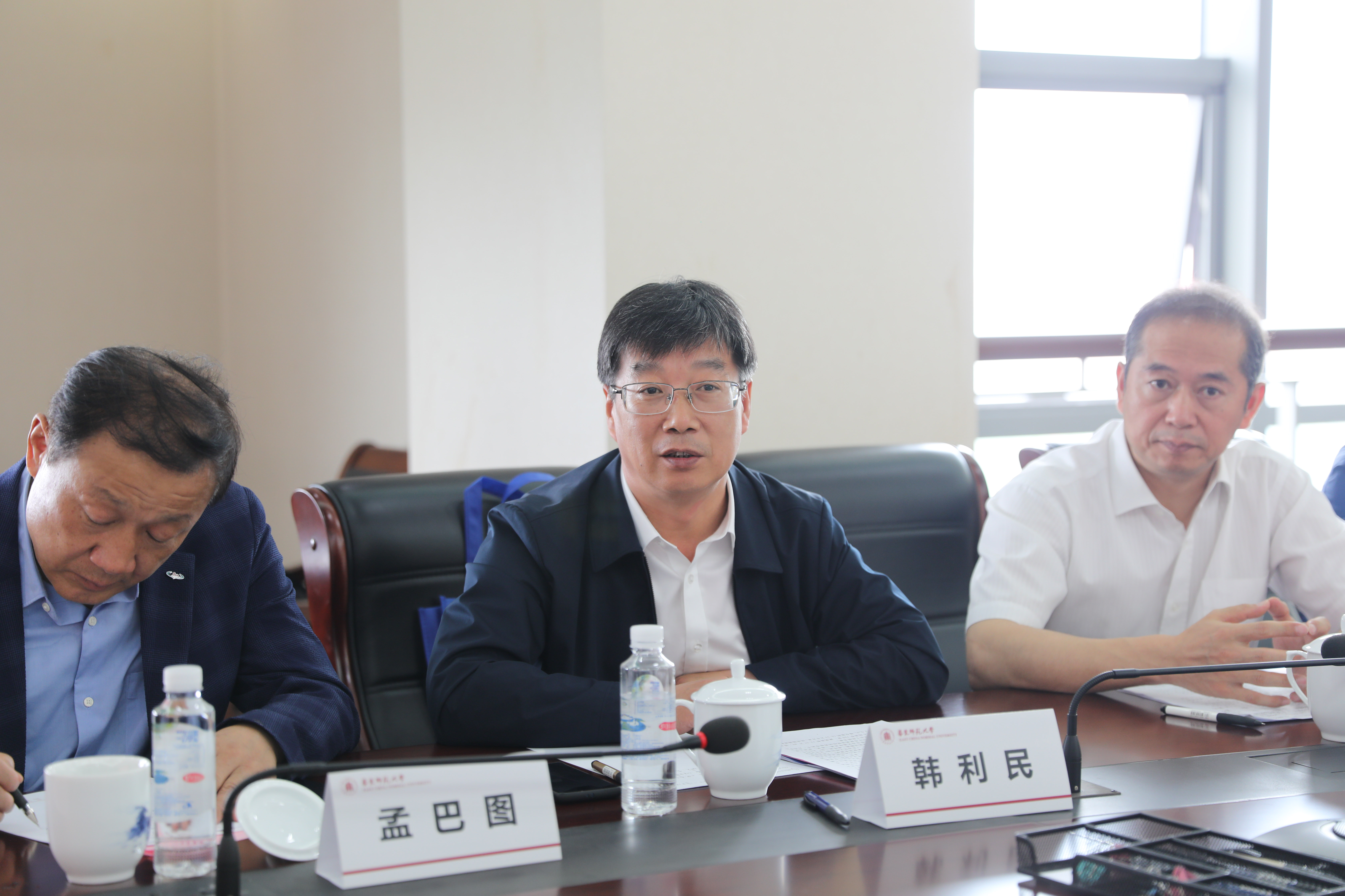 5月27日,乌海市委副书记、政府代市长杨进一行来华东师大洽谈合作,内蒙古自治区人民政府驻上海办事处主任孟巴图陪同出席。洽谈会在闵行校区举行,校党委常委、副校长孙真荣出席洽谈会并致欢迎辞,科技处处长张桂戌主持洽谈会。乌海市副市长武也文、乌海职业技术学院院长韩利民以及乌海市教育局、工信局、财政局、区域经济合作局等相关部门主要负责人,学校生态与环境科学学院、工商管理学院、化学与分子工程学院、崇明生态研究院等相关院系负责人参加了洽谈会。