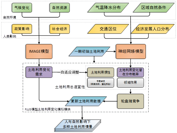 图1:耦合人类活动与自然效应多种驱动力因子的GeoSOS-FLUS模型