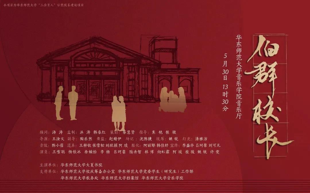 该剧以大夏书院学生为主编排,得到学校校庆筹备办公室、档案馆等倾力支持,于2019年首演,两年间受邀公演5次。在庆祝中国共产党成立100周年、华东师大建校70周年之际,师生经过重新打磨复排,于5月30日再次搬上了舞台。该剧也是华东师大献礼70周年校庆的两部大师剧之一。