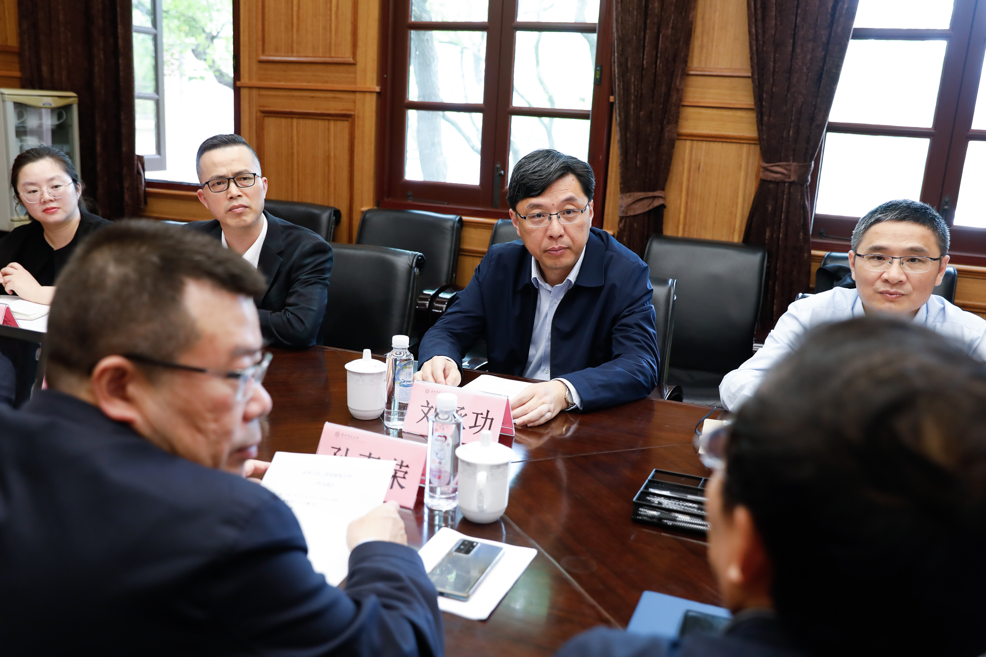 会前,华东师大党委书记梅兵会见刘承功一行,就两校合作开展校史研究、推进70周年校庆工作进行了交流。