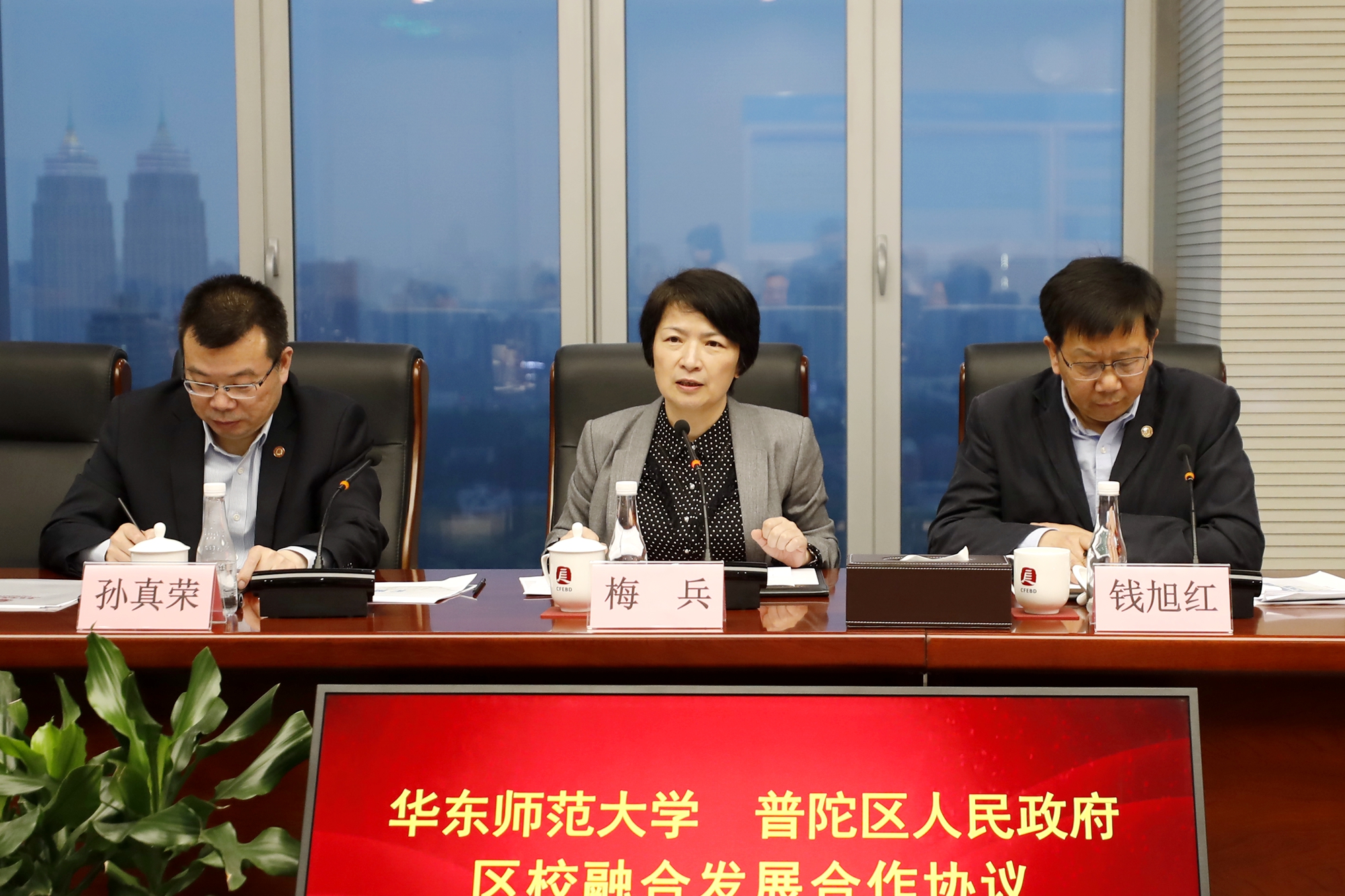 梅兵表示,学校植根于普陀,血脉相连逾90载,情谊深厚。今年是建党百年,是“十四五”规划和全面建设社会主义现代化国家新征程开启之年,恰逢华东师大建校70周年,在这样一个内涵极其丰富的新起点上全面深化和升华双方合作,标志着区校合作进入了新的发展阶段。对学校而言,与普陀区深化融合发展,既是对接国家和地方战略发展的要求,也是学校新一轮发展的内生需求。梅兵表示,华东师大将更加主动地对接上海市和普陀区经济社会发展的战略需求,真正与普陀共融共生、携手并进。