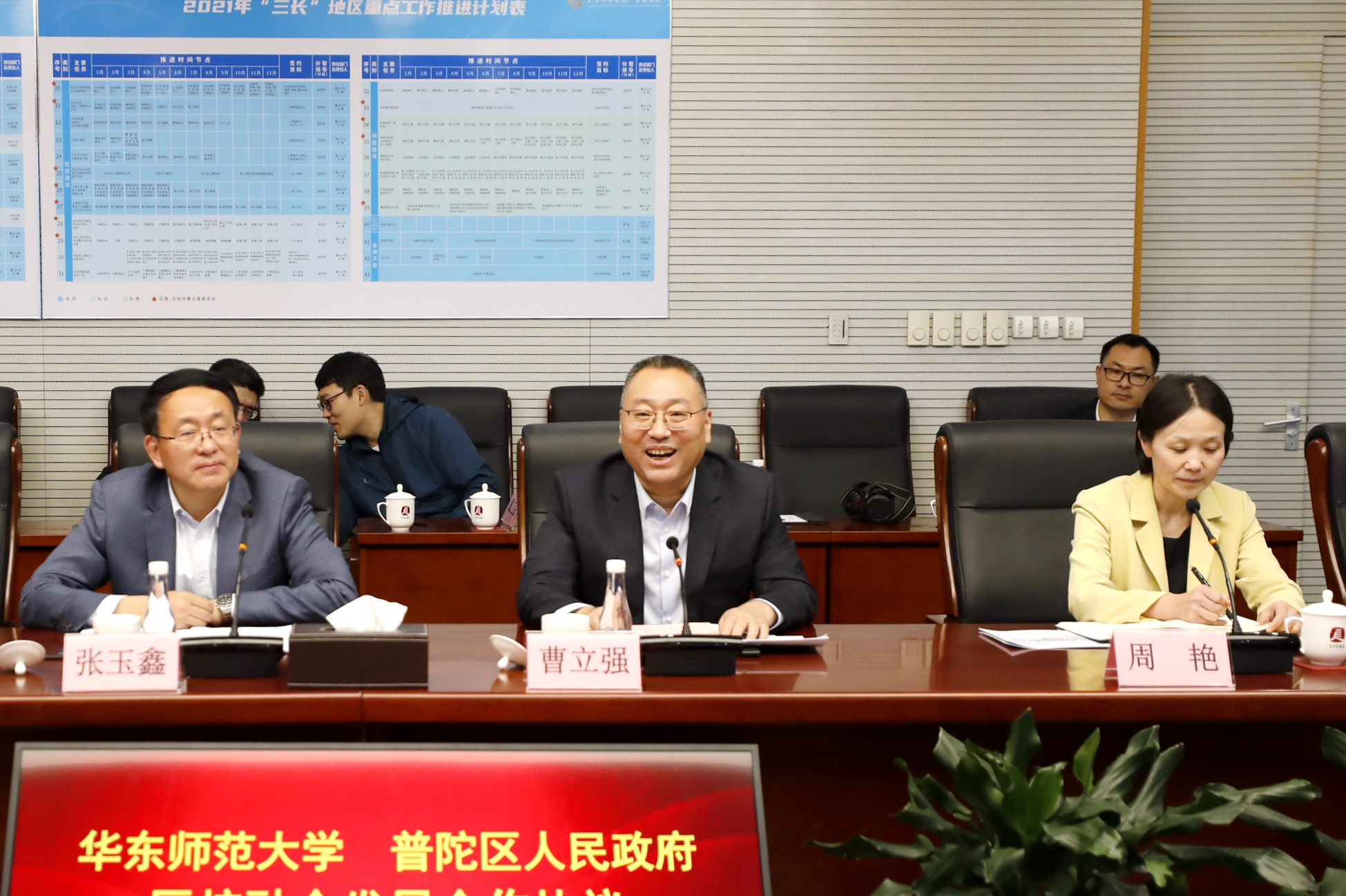 普陀区委常委、副区长张玉鑫,华东师大党委常委、副校长孙真荣代表双方签约。