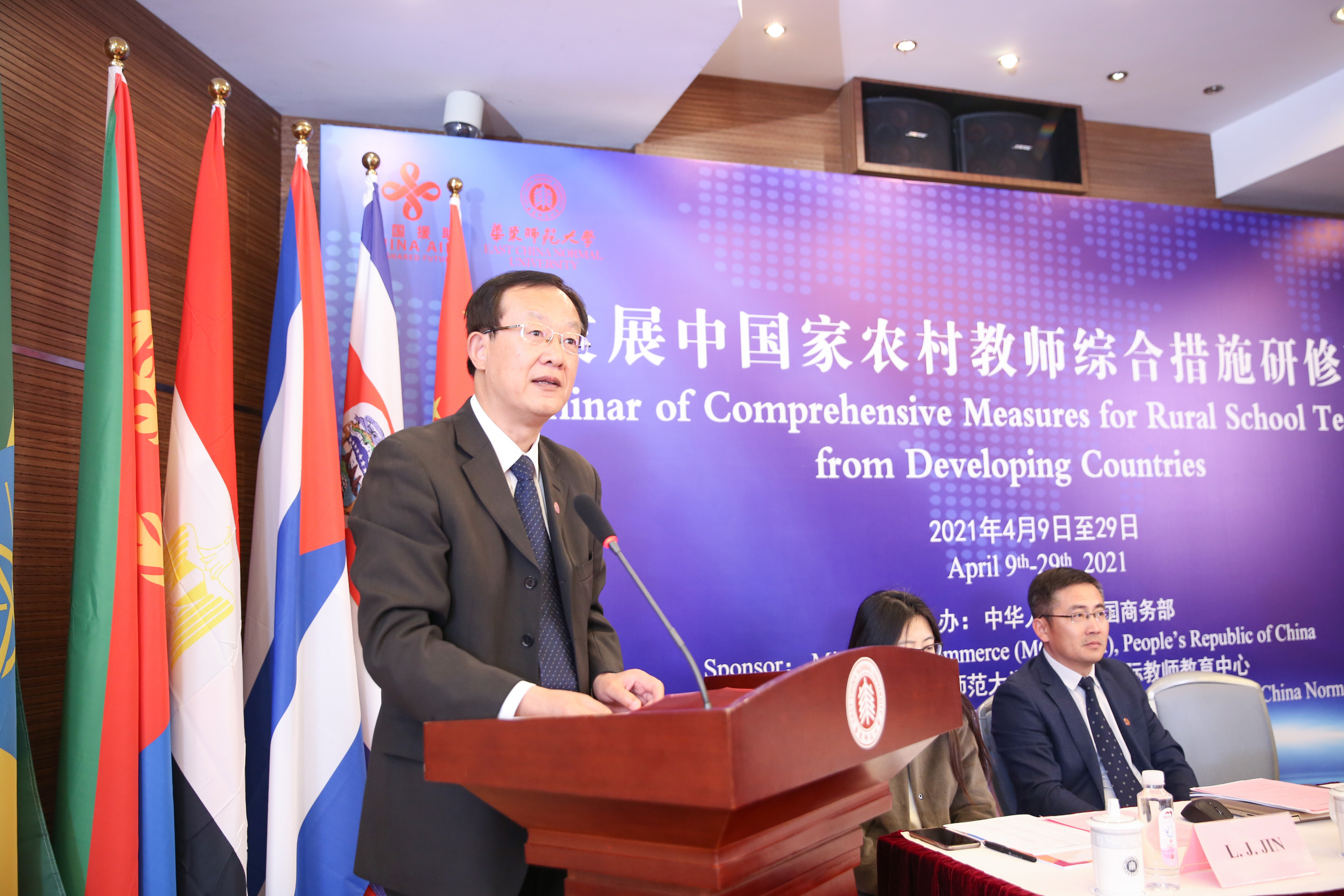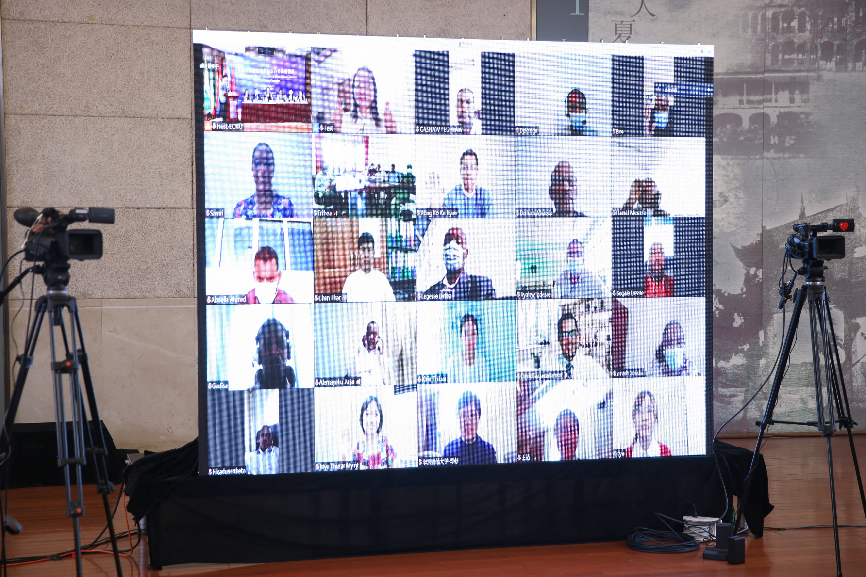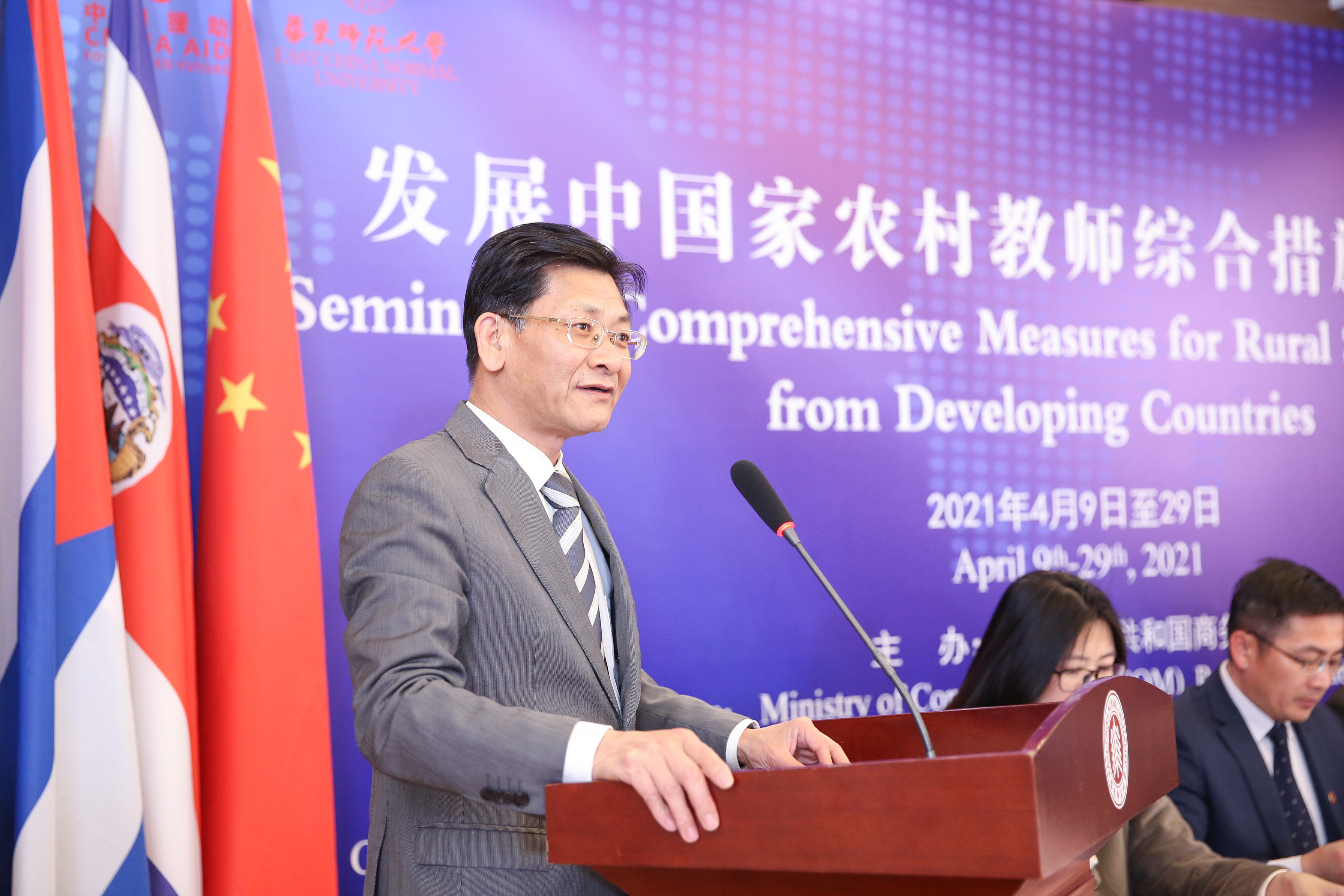 4月9日,由中国商务部主办、华东师大教育学部国际教师教育中心承办的中国商务部“发展中国家农村教师综合措施研修班”线上开班仪式在中北校区举行。商务部国际商务官员研修学院副院长陈润云、商务部国际商务官员研修学院项目管理一处处长哈雨、上海市商务委员会对外经济合作处二级调研员刘蓓敏、埃塞俄比亚教育部教师和教育领导司司长Berhanu Moreda、埃塞俄比亚亚的斯亚贝巴教育局顾问Bereda Samrawit Kibatu以及3245澳门新莆京副校长李志斌、教育学部常务副主任荀渊、国际教育中心副主任金丽君参加开班仪式。开班仪式由国际教师教育中心主任彭利平主持。