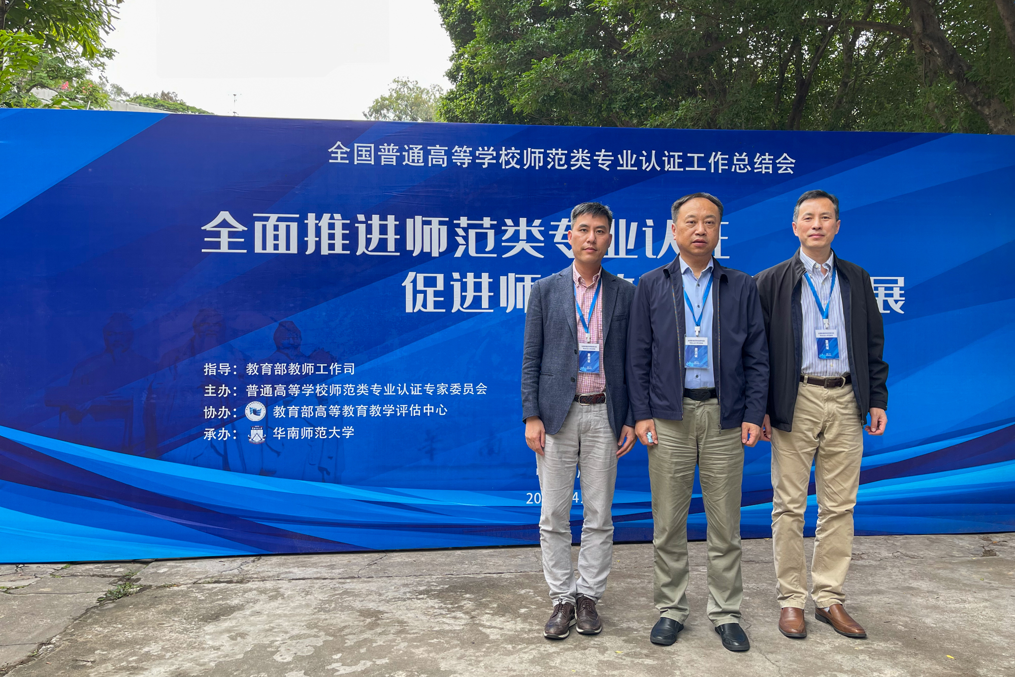 4月9日,全国普通高等学校师范类专业认证工作总结会在广州华南师范大学举行。3245澳门新莆京副校长戴立益出席会议并作发言,庄辉明、代蕊华、刘春玲、孟钟捷、丁旵明等作为高校师范类专业认证专家委员会委员、专委会委员以及学校代表出席了会议。
