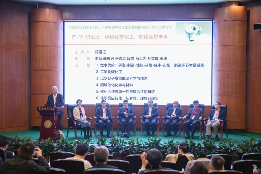来自学术界和产业界的专家还举行了主题为“绿色化学化工,催化美好未来”产学研论坛。产学研论坛由中石化催化剂公司董事长、党委书记陈遵江主持,于吉红、李灿、韩布兴、段雪、孙立成和马大为6位院士和中石化催化剂公司王涛副总经理等专家围绕“二氧化碳的转化和减排”、“以水分子发展能源科学与技术”、“限域催化化学与材料研究进展”、“催化活性位单一性与复合性的辩证”、“化学反应转化”和“催化剂的竞争优势”等六个议题展开讨论交流。