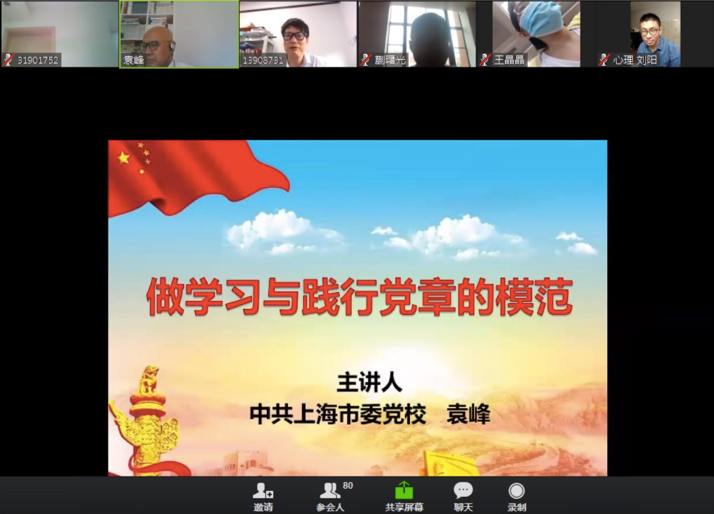 5月27日下午,上海市委党校袁峰教授为学校第17期青年骨干理论培训班、第41期教职工入党积极分子培训班共80余名学员作题为“做学习与践行党章的模范”线上专题辅导报告。报告由党校副校长兼高级研修学院副院长张俊华主持。