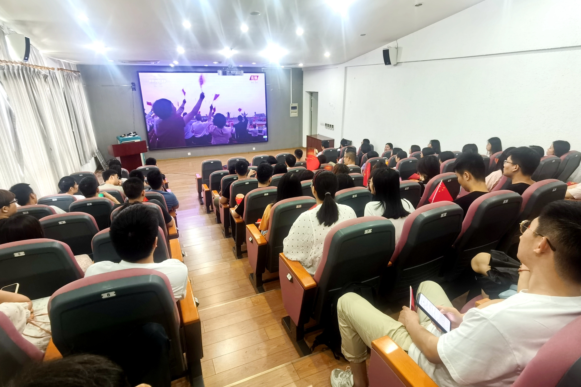 校内各院系单位组织师生在设立的各分会场集体收看