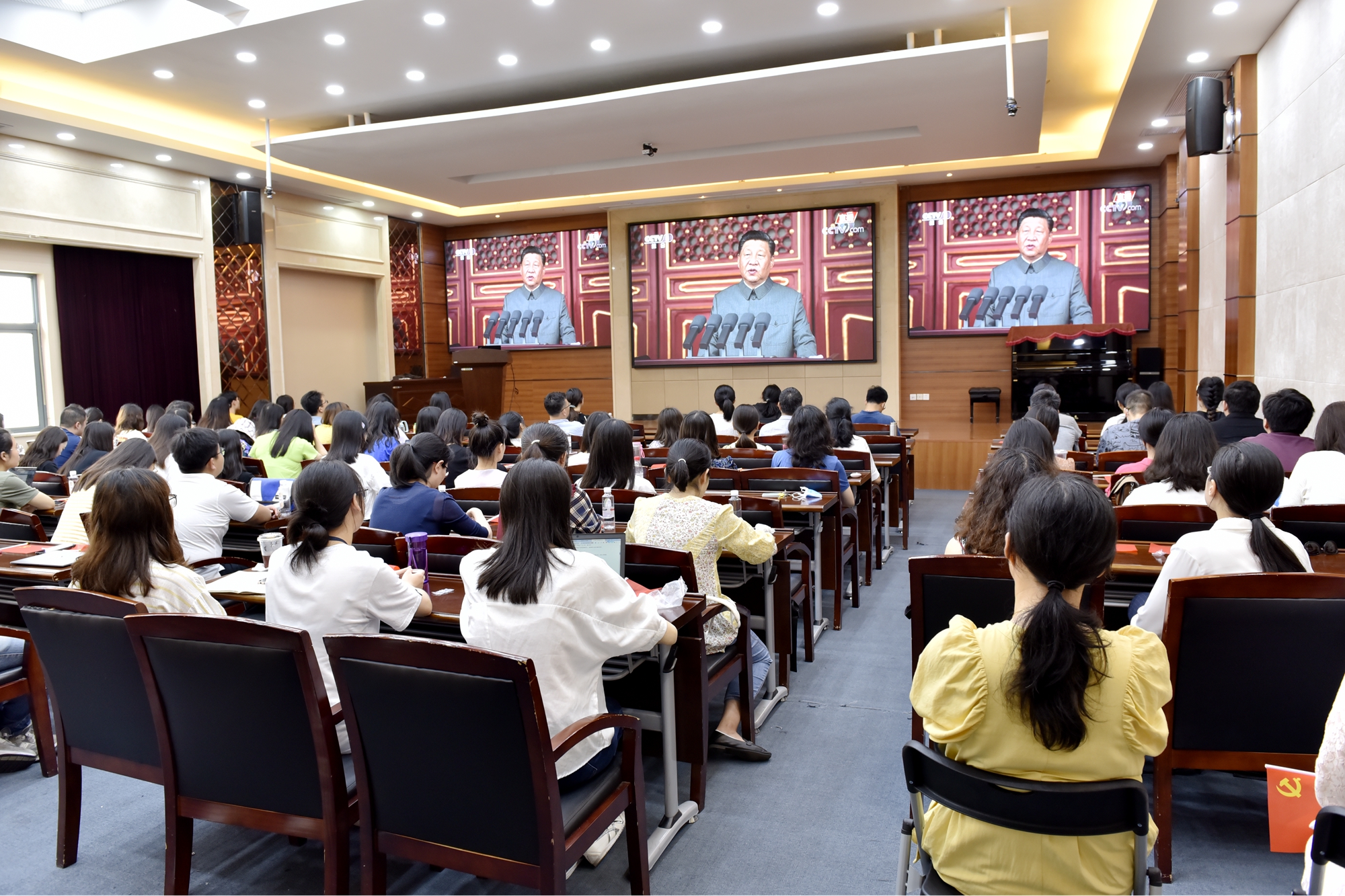 庆祝大会后,校党委中心组第一时间开展集中学习研讨,各单位也通过专题研讨会、学习座谈会等多种形式,深入学习领会习近平总书记重要讲话精神。