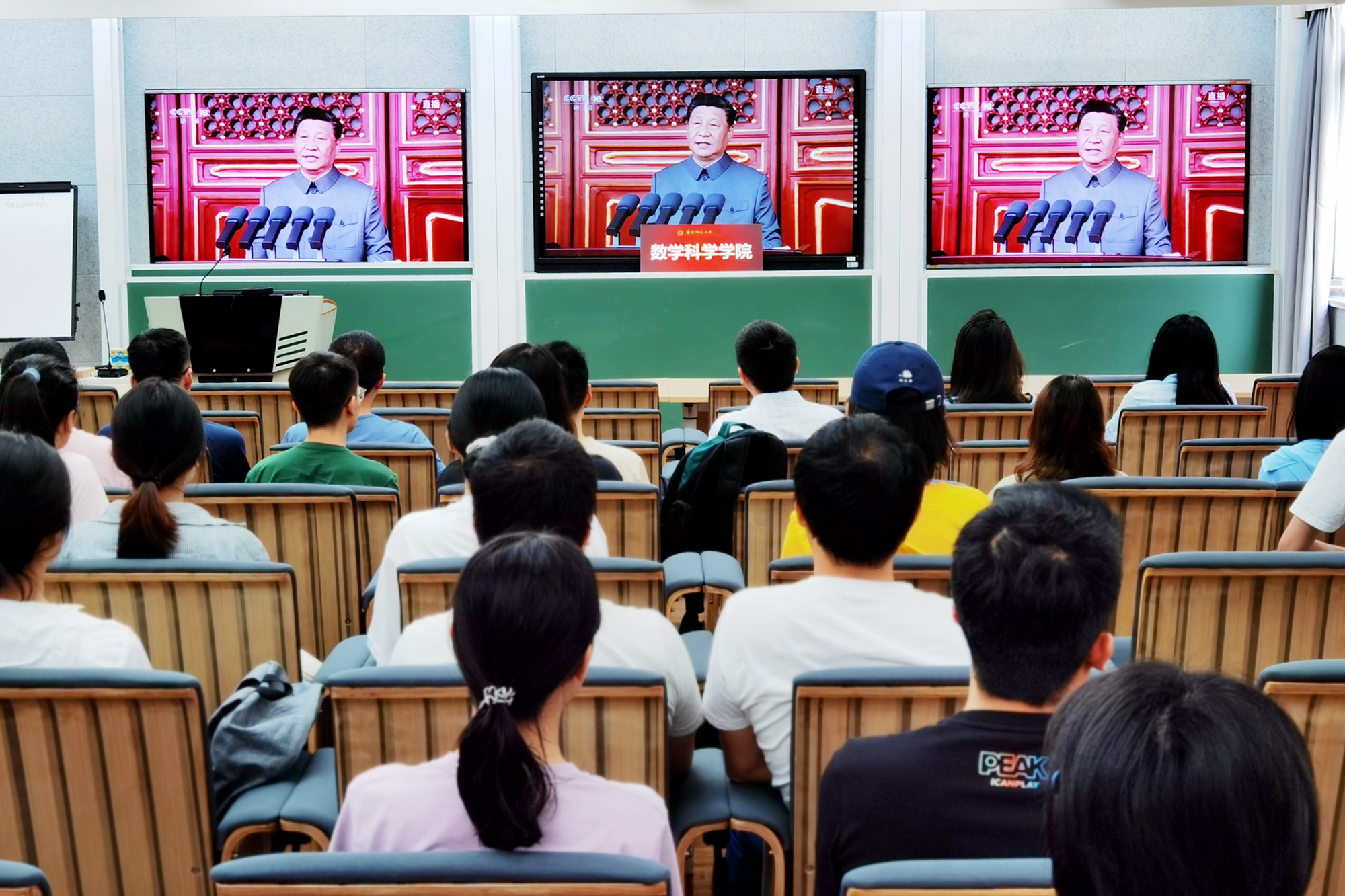 3245澳门新莆京在中山北路校区、闵行校区分别设立集中收看点,校党委书记梅兵、校长钱旭红等与师生集体收看庆祝大会实况转播。校内各院系单位组织师生在设立的各分会场集体收看。正在学校参加全国高校思想政治理论课教师研修基地(3245澳门新莆京)“高校教学变革与思政课教师专业化能力提升”研修的60余名学员也参加了集体收看。