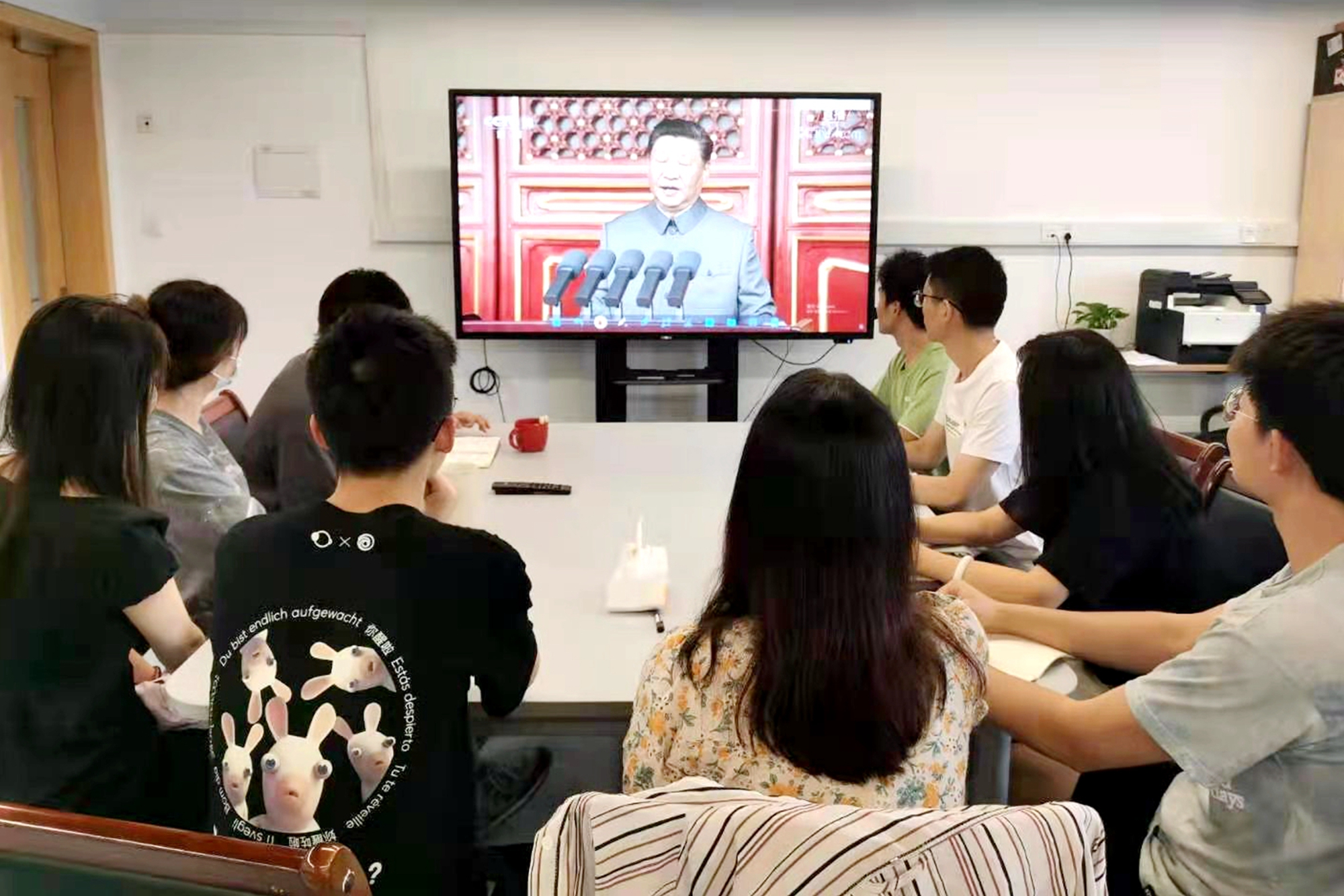 工作实际,学习交流了习近平总书记在庆祝中国共产党成立100周年大会上的重要讲话精神。