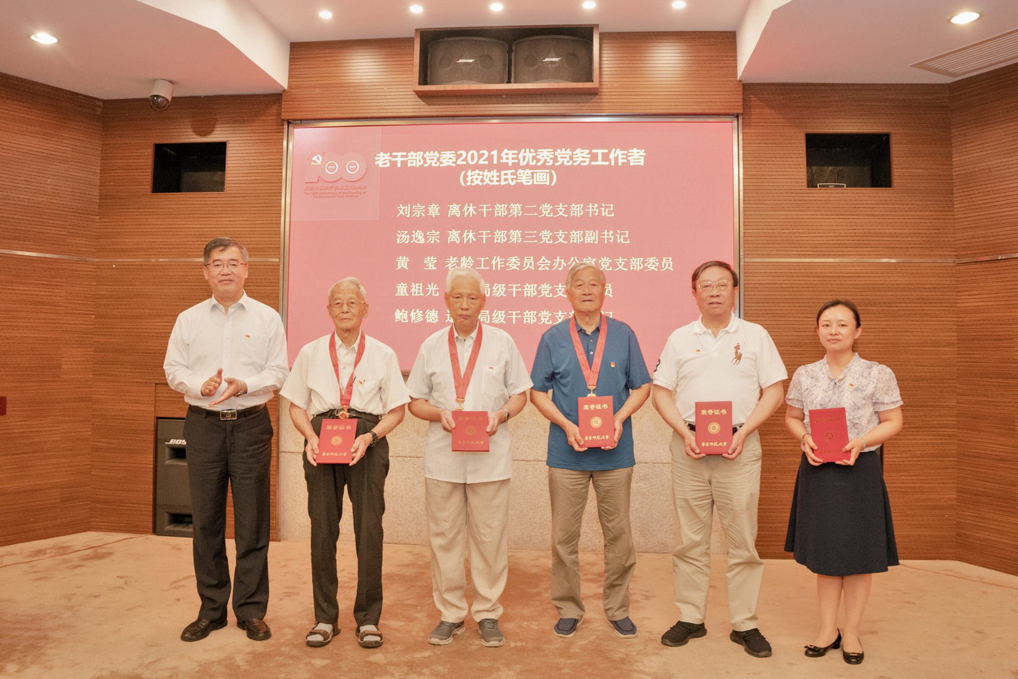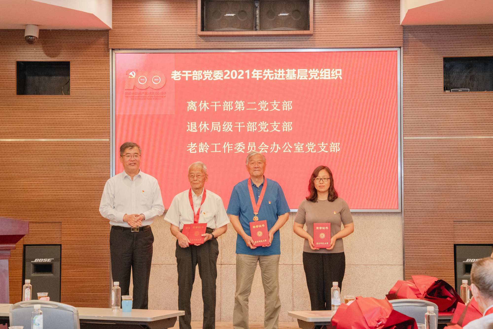 值此建党百年、校庆七十周年之际,为深入推进我校离退休党建工作,充分发挥先进典型表率示范作用,进一步增强党的创造力、凝聚力、战斗力,老干部党委根据《2021年度3245澳门新莆京老干部党委党内荣誉表彰实施方案》评选出10名“优秀共产党员”、5名“优秀党务工作者”及3个“先进基层党组织”。会上,朱民为获奖同志及代表颁发荣誉证书,鼓励他们珍惜荣誉、再接再厉,为党和人民的事业作出新的更大的贡献。