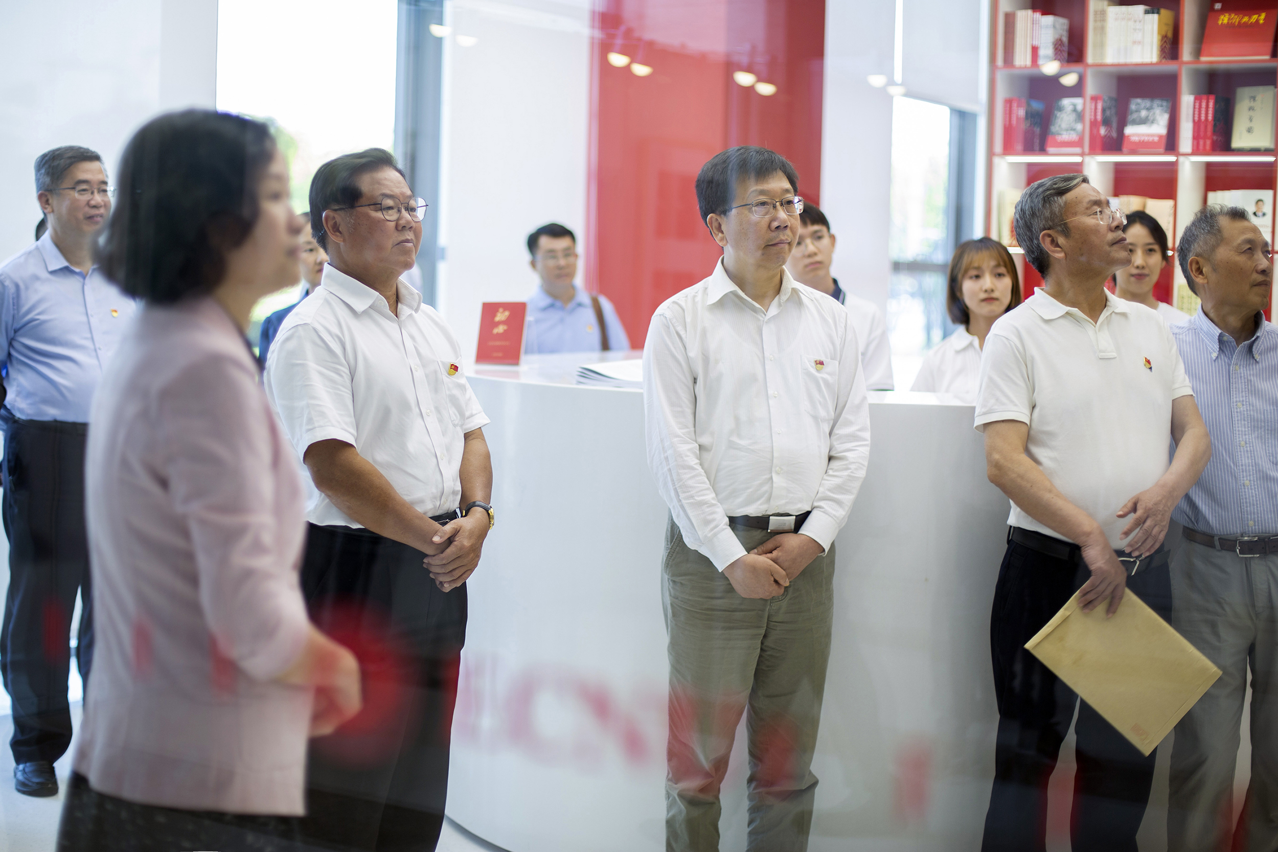 指导组参观了冯契学术成就陈列室,观摩了在陈列室一楼会议室举行的学校办公室党支部主题党日活动。学校办党支部主题党日围绕“校史中的党史”,邀请学校校史研究专家和支部党员代表,从学校历史上极具代表性的重要人物身上,挖掘校史中的红色资源,传承校史中的红色基因,并分享党史学习教育心得体会。