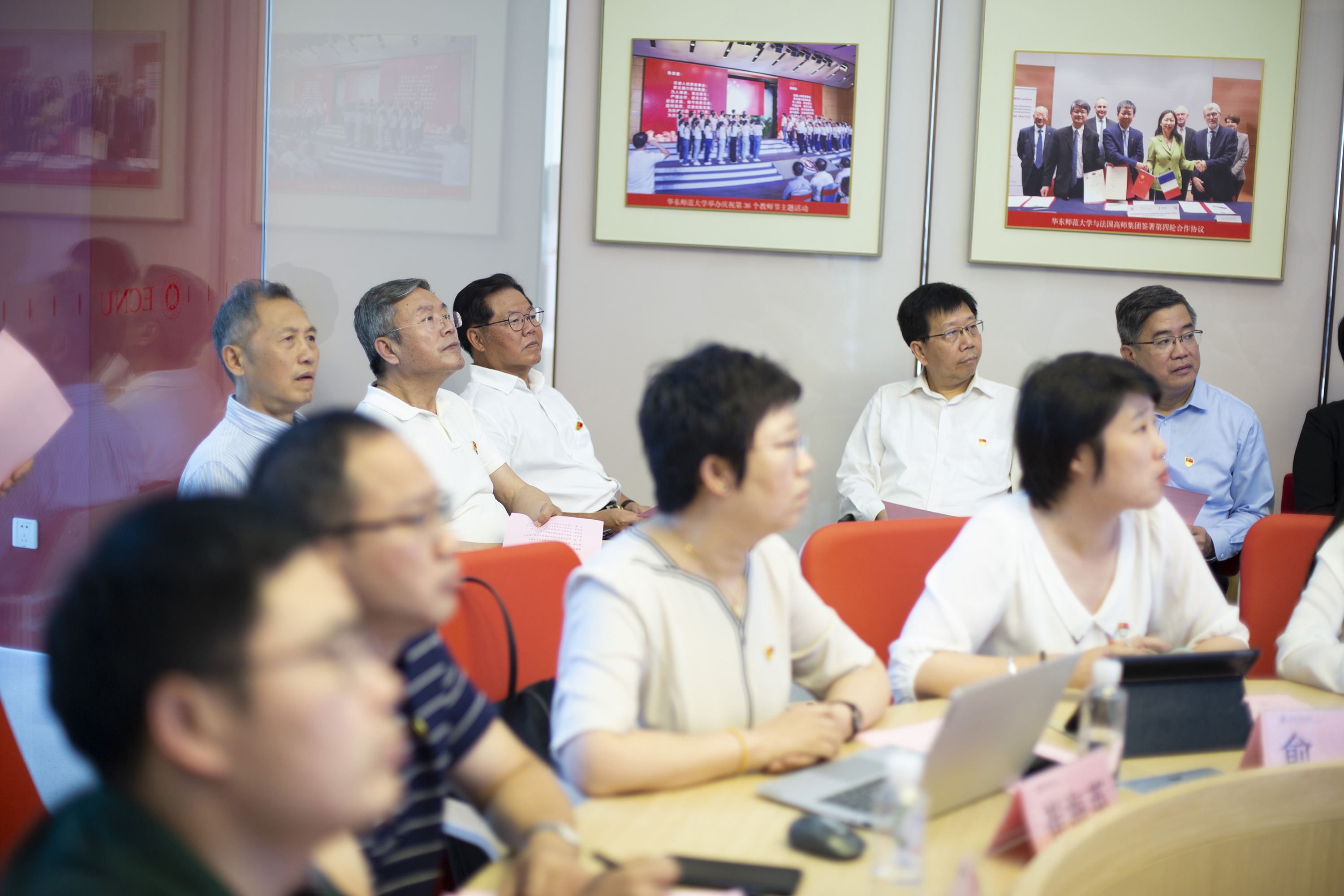 6月23日下午,教育部党史学习教育高校第六巡回指导组组长朱崇实,副组长韩晓峰、黄宗明等一行到华东师大调研指导党史学习教育工作。