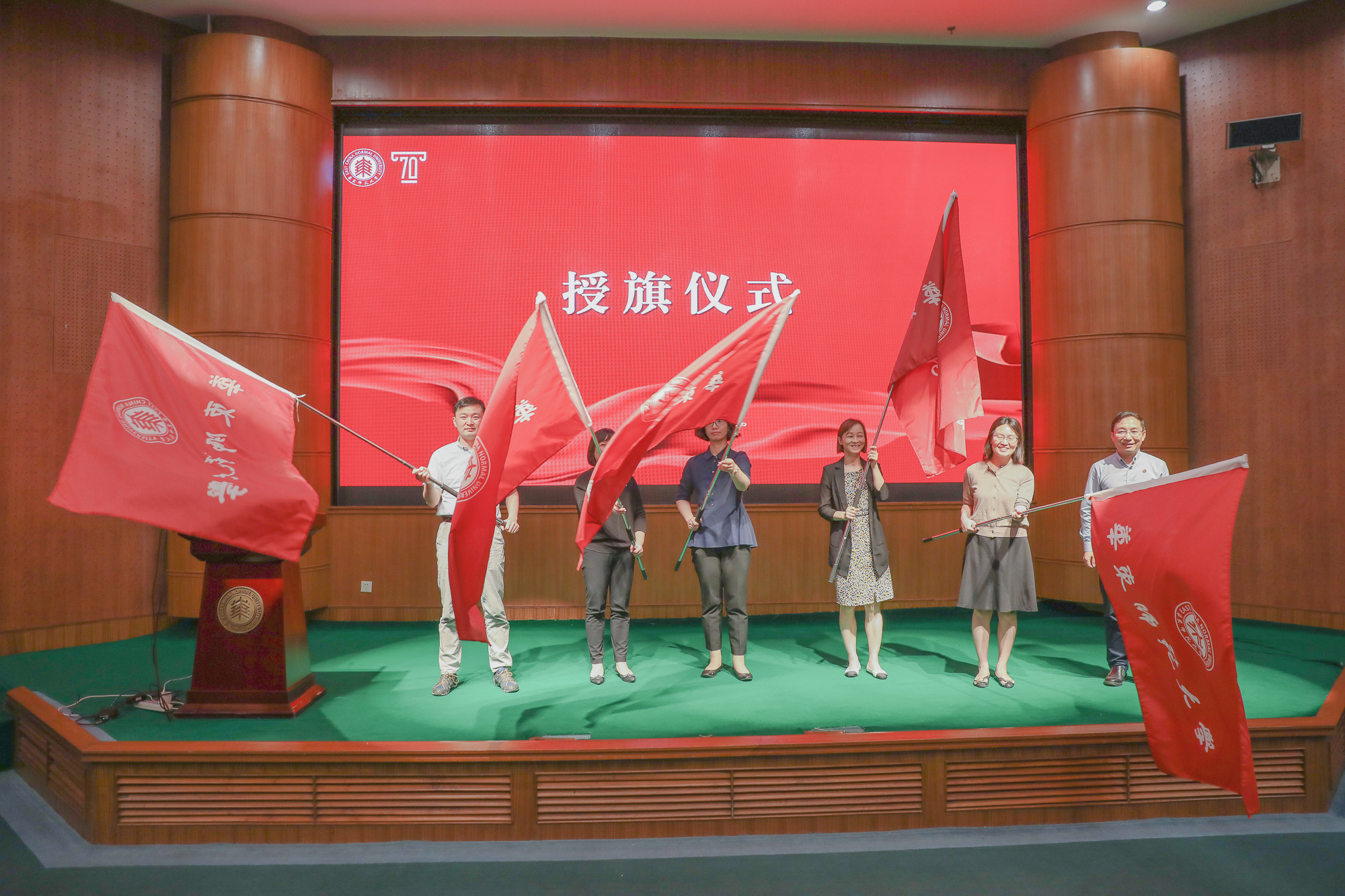 会上举行了公益行动队伍授旗启动仪式。学校教育学部“同心·同语·同行”新疆少数民族儿童国家通用语言趣味夏令营项目、经管学部“大夏工坊”助力乡村振兴、社会发展学院“百年育人,蕴智润心”乡土建设学社江西服务学习夏令营项目、数学教育学院“菁英翱翔社暑期社会实践”、大夏书院“家国新体验-民族地区中小学课程开发与实施”等五支实践队伍正式启动,他们将在暑期赴各地开展社会实践,在乡村振兴增添更多华东师大力量。