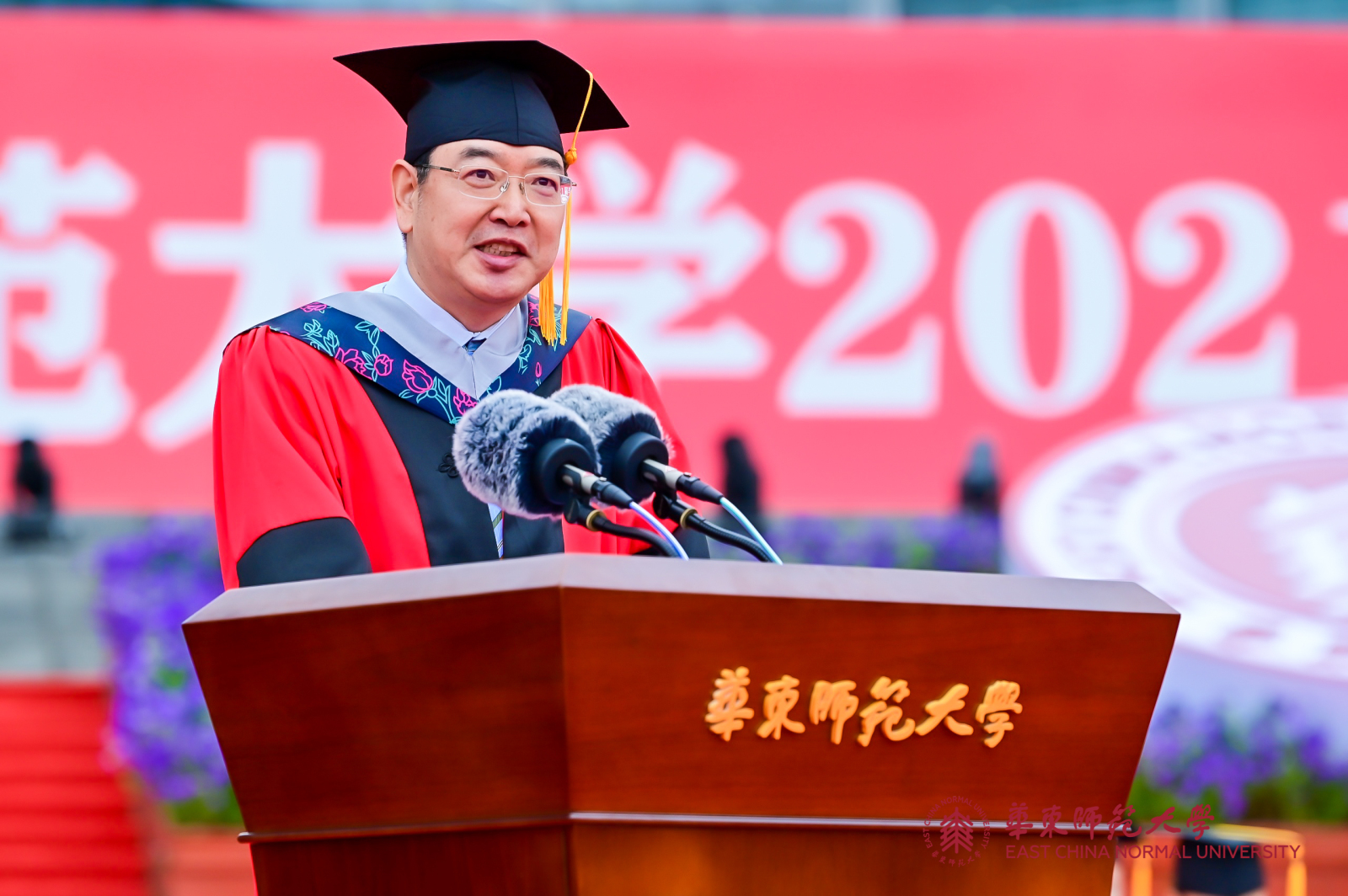 六月是属于毕业生的季节。典礼主持人、校党委副书记杨昌利介绍,2021年,华东师大共有毕业生8114人,其中本科生3671人,硕士生3849人,博士生594人。今年的毕业生中,有近三分之一的同学立志投身教育事业,超过两成的同学继续求学深造,不少同学即将进入各自的专业领域工作,百余位同学参加选调计划服务社会基层,还有不少同学投身军旅、支援西部,到祖国最需要的地方去,用实际行动诠释新时代青年的使命与担当。
