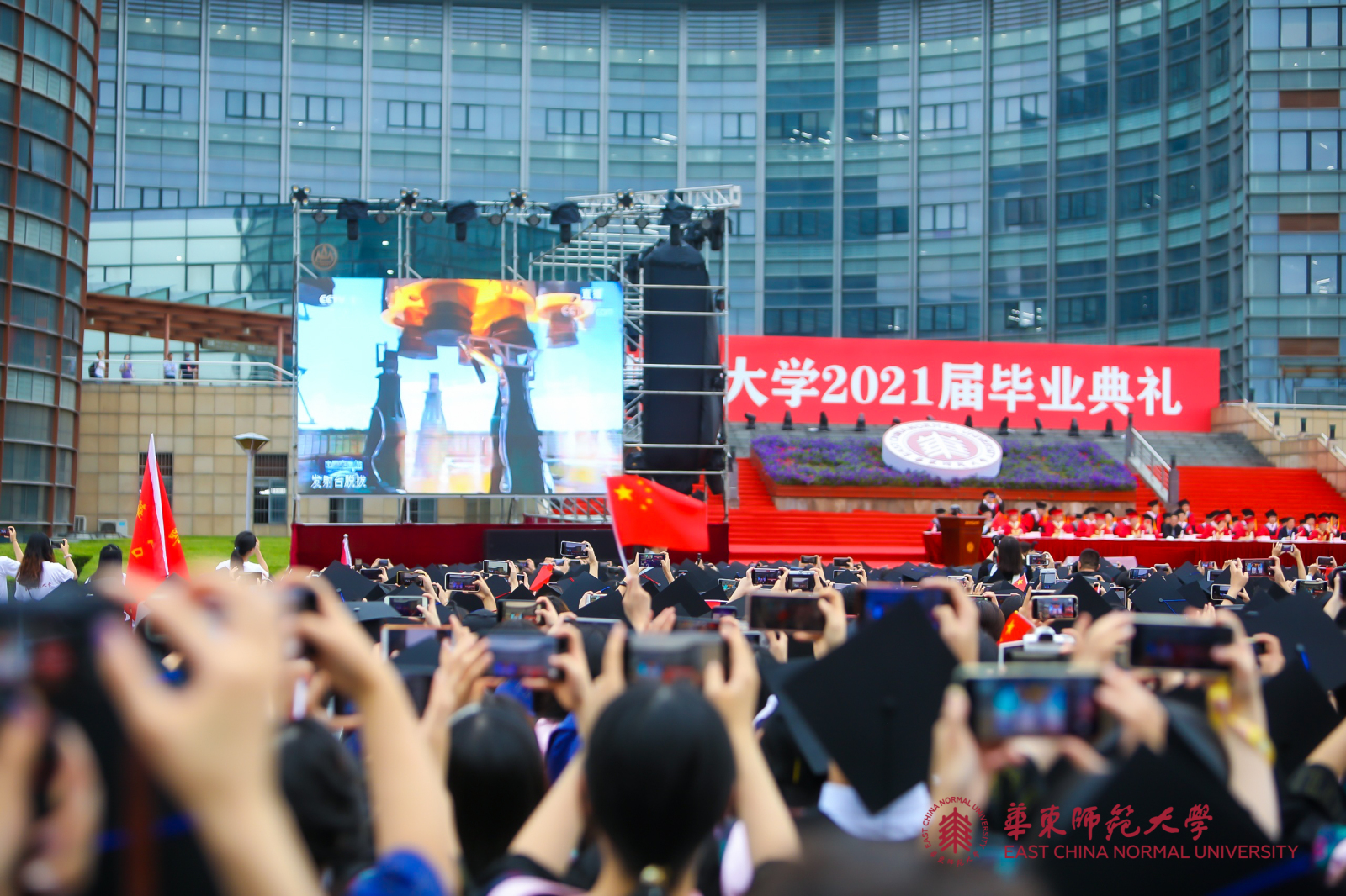 毕业典礼上还播放了《华东师大党史学习教育在青年学子中走“新”又走“心”》和《学长学姐寄语2021届毕业生》为毕业生特别制作的视频片。