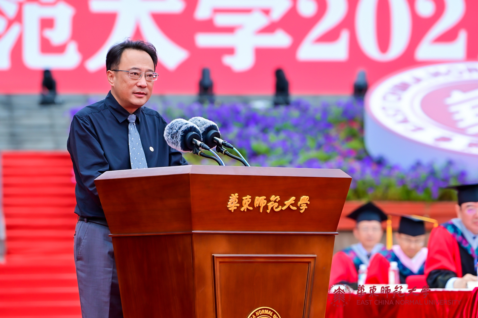 华东师大8000多名毕业生线上线下欢聚一堂。校领导梅兵、钱旭红、朱民、杨昌利、曹友谊、孙真荣、李志斌、周傲英、戴立益,校长助理,校学术委员会和各专门委员会负责人,学部、院系、书院主要负责人,校友代表,教师代表,毕业班辅导员,相关职能部门负责人等出席典礼,一起见证了师大学子完成学业开启人生新征程的重要时刻。