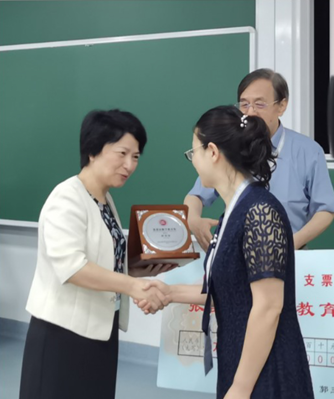 华东师大党委书记梅兵为郭玉峰颁发荣誉证书