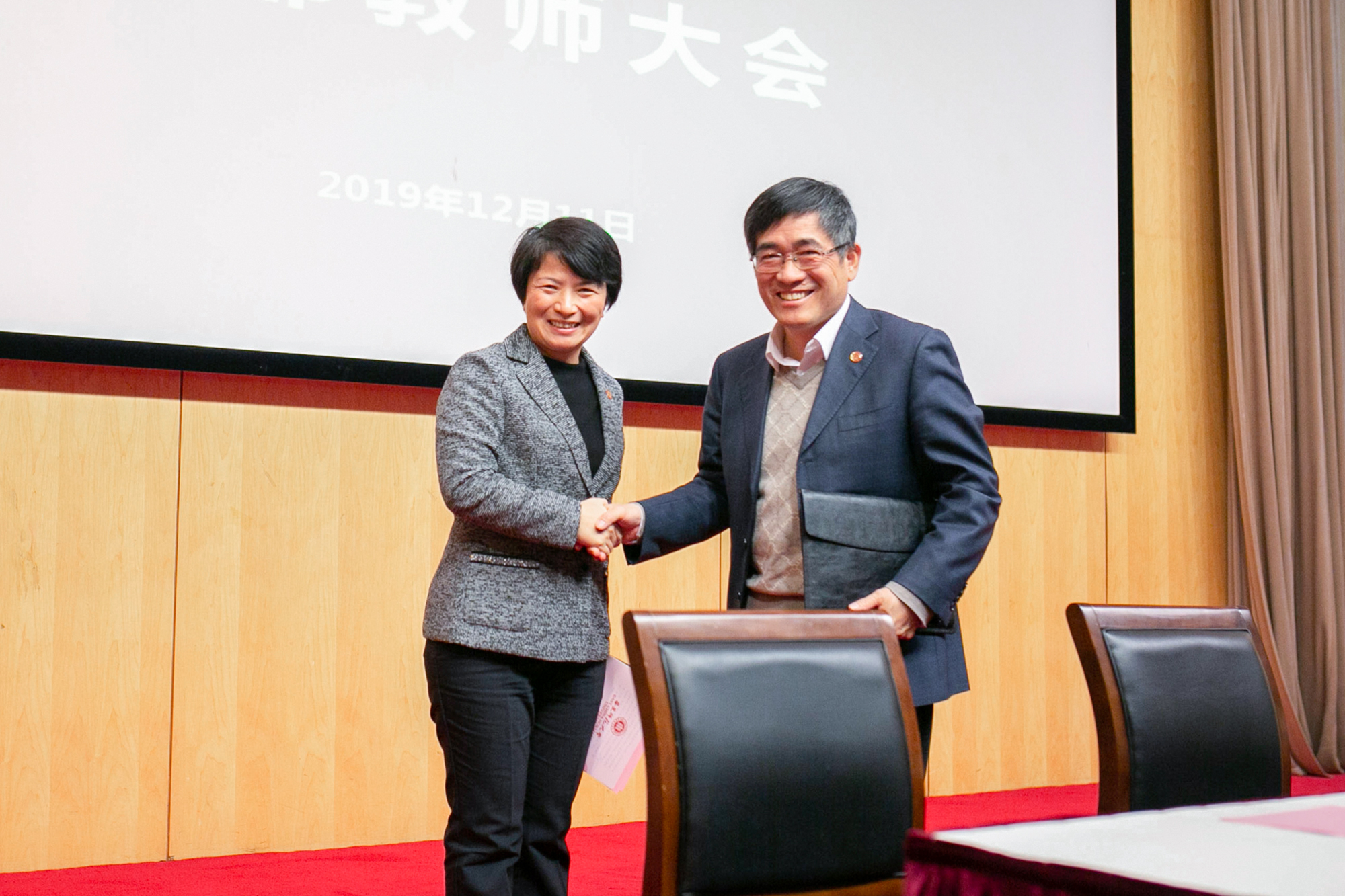 在过去几年中,我跟有关同事谈话,做思想工作,往往是最后我说了“具体问题梅校长会跟你商量”,这场谈话才算真正结束。这次党委书记新老更替正好发生在“不忘初心,牢记使命”主题教育的收官阶段,我在与梅兵同志进行民主生活会前的谈心谈话时,讲了学校存在的不少问题,然后我跟她说,以前往往是我提出问题,你解决问题;从现在开始,你也要善于提出问题了,但我希望,你善于解决问题的特点能继续保持。
