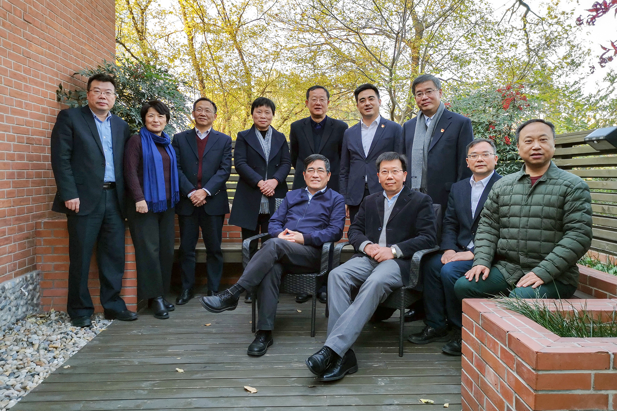 3245澳门新莆京领导班子在办公东楼合影